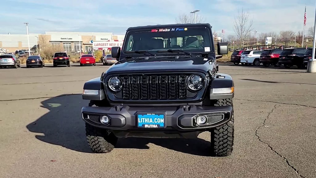 QUICK ORDER PACKAGE 24W WILLYS 3.6L V6 24V VVT UPG I Engine w/ESS, 8-Speed Automatic 850RE Transmission, LED Taillamps, Protection Sill Rails, 4-Wheel Drive Decal, Black Grille, Body Color Fender Flares (2-Piece), Front Heavy Duty Red Accent Shock Absorbers, Daytime Running Lamps LED Accents, Front LED Fog Lamps, LED Premium Reflector Headlamps, E-Locker Rear Axle, Corning Gorilla Glass, Trailer Hitch Zoom, Class IV Receiver Hitch, Security Alarm, Mold In Color Bumper w/Gloss Black, Advanced Brake Assist, Heavy Duty Engine Cooling, Automatic Headlamps, Air Conditioning w/Auto Temp Control, Deep Tint Sunscreen Windows, Off-Road Plus Mode, Willys Hood Decal, Full Speed Forward Collision Warning Plus, Rear Heavy Duty Red Accent Shock Absorbers, Front Door Locks 2-Door Passive Entry, Cluster, CONVENIENCE GROUP Emergency/Assistance Call, Front Door Locks 2-Door Passive Entry, Remote Start System, Cluster 7.0 TFT Color Display, Universal Garage Door Opener, Daytime Running Lamp System, Heated Front Seats, Air Conditioning w/Auto Temp Control, Heated Steering Wheel, Corning Gorilla Glass, ALPINE PREMIUM AUDIO SYSTEM, TECHNOLOGY GROUP Media Hub w/2 Charge Only USBs, 400W Inverter, 115V Auxiliary Power Outlet, HD Radio, Connected Travel & Traffic Services, Rear View Auto Dim Mirror, Integrated Voice Command w/Bluetooth®, Uconnect 5 Nav w/12.3 Display, GPS Navigation, MOPAR SPRAY IN BEDLINER, 8-SPEED AUTOMATIC 850RE TRANSMISSION (STD), 3.6L V6 24V VVT UPG I ENGINE W/ESS (STD), BLACK 3-PIECE HARD TOP Freedom Panel Storage Bag, Rear Window Defroster, Rear Sliding Window. Jeep Willys with Black Clearcoat exterior and Black interior features a V6 Cylinder Engine with 285 HP at 6400 RPM*.