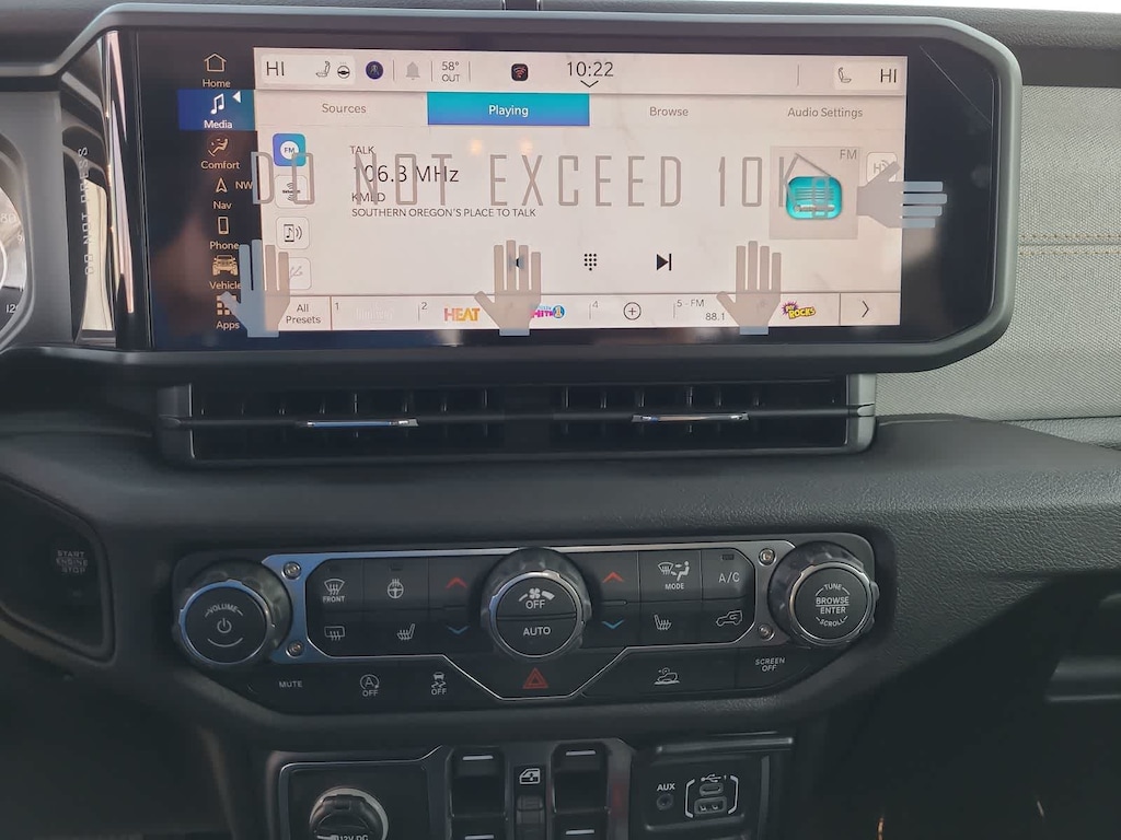 iPod/MP3 Input, Apple CarPlay®, WiFi Hotspot 4x4, Aluminum Wheels, Child Safety Locks, Steering Wheel Controls, Rollover Protection System, Electronic Stability Control, Bucket Seats.