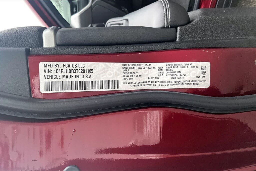 LIMITED ALTITUDE PACKAGE Exterior Accents Dark Neutral Metallic, Delete Limited Badge, 265/50R20 Performance A/S Tires, Dual-Pane Panoramic Sunroof, 20 x 8.5 Gloss Black Painted Aluminum Wheels, TRAILER TOW PACKAGE Rear Load Levelling Suspension, Full-Size Spare Tire, 7 & 4-Pin Wiring Harness, 18 Full-Size Steel Spare Wheel, Trailer Hitch Zoom, Class IV Receiver Hitch, 8-SPEED AUTOMATIC (880RE) TRANSMISSION, 2.0L HURRICANE 4 TURBO ENGINE W/ESS (STD). Jeep Limited with Velvet Red Pearlcoat exterior and Global Black interior features a 4 Cylinder Engine with 324 HP at 6000 RPM*.