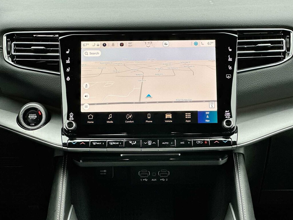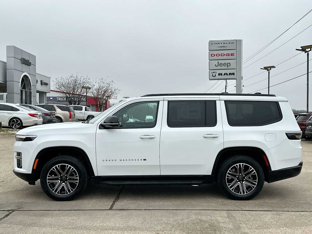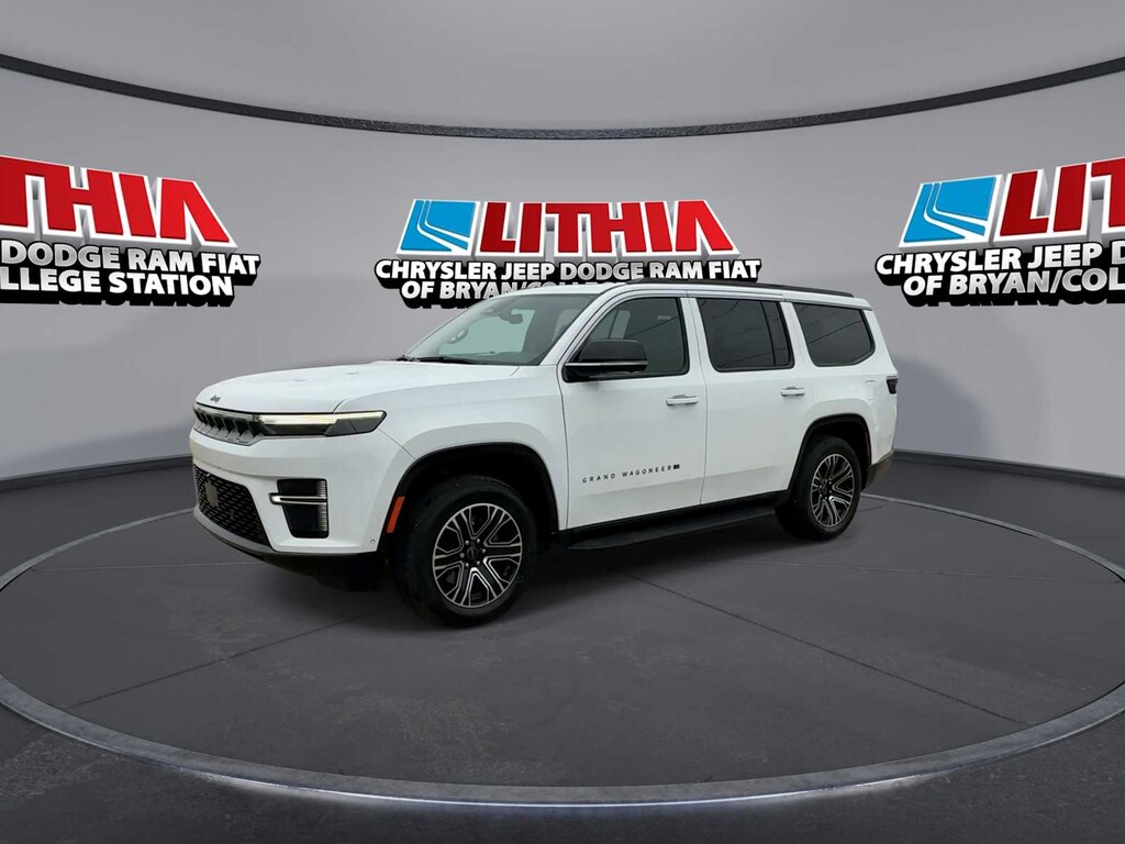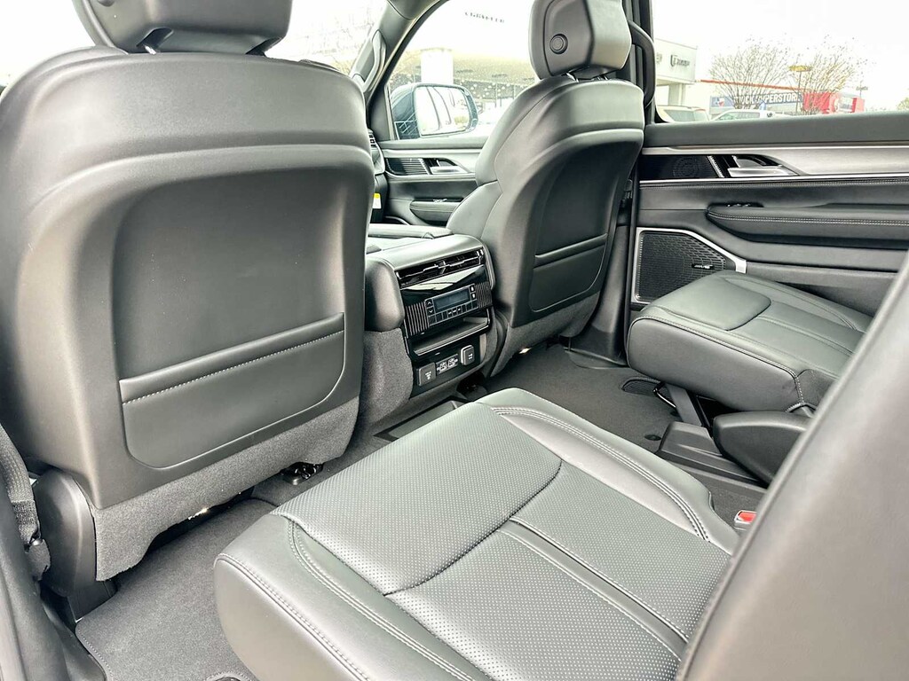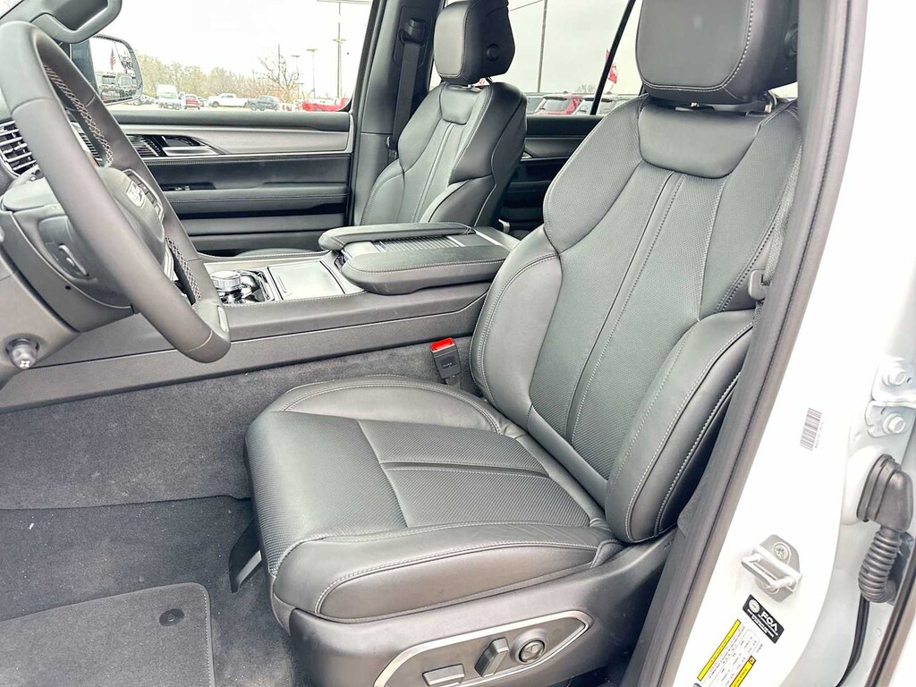 PREMIUM GROUP I Side Distance Warning, 3rd Row 60/40 Power Recline Seat, Luxury Front & Rear Floor Mats, Reversible Carpet/Vinyl Cargo Mat, Surround View Camera System, Auto Power Folding Mirrors, P&P Park & Unpark Assist w/Stop System, Cargo Cover, Auto Power Folding Exterior Mirrors, Interior Rear Facing Camera, 3 Panel Sunroof, 20 X 9 MACHINE FACE PAINTED ALUMINUM WHEELS (STD), 8-SPEED AUTO 880RE TRANSMISSION (STD), 3.0L I6 HURRICANE SO TWIN TURBO ESS ENGINE (STD). Jeep Grand Wagoneer with Bright White Clearcoat exterior and Global Black interior features a Straight 6 Cylinder Engine with 420 HP at 5200 RPM*.