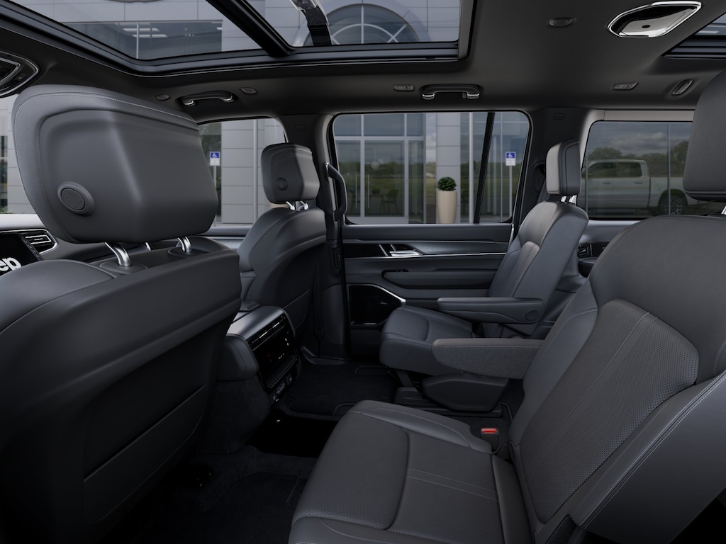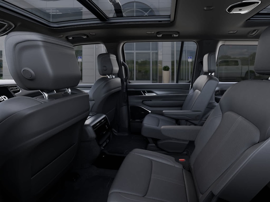 Our Grand Wagoneer cabin is both luxurious and versatile, featuring heated, ventilated, and massaging leather-trimmed front seats, heated power-sliding second-row captains chairs, a power-folding third row, a heated leather-wrapped steering wheel, four-zone automatic climate control, and authentic walnut wood accents. Premium sound comes from a McIntosh audio system, paired with a 12.3-inch driver display, a 12-inch touchscreen with Uconnect 5 NAV, wireless Apple CarPlay and Android Auto, full-color navigation, and WiFi hotspot capability.