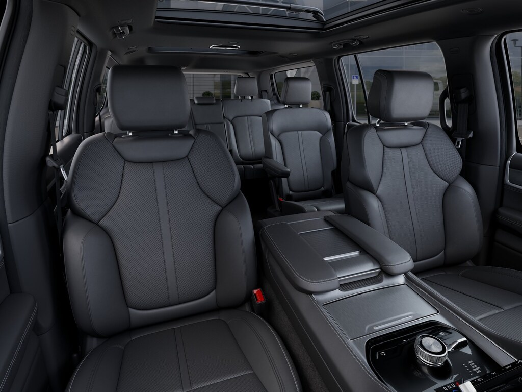 Our Grand Wagoneer cabin features heated/ventilated/massaging leather-front seats, heated second-row captains chairs, a power-folding third row, a heated leather-wrapped steering wheel, and four-zone automatic climate control. Wood-tone interior accents complement premium materials throughout. Premium sound is provided by the McIntosh audio system, supported by a 12.3-inch driver display and a 12-inch touchscreen with Uconnect 5 NAV, wireless Apple CarPlay and Android Auto, and available WiFi hotspot.