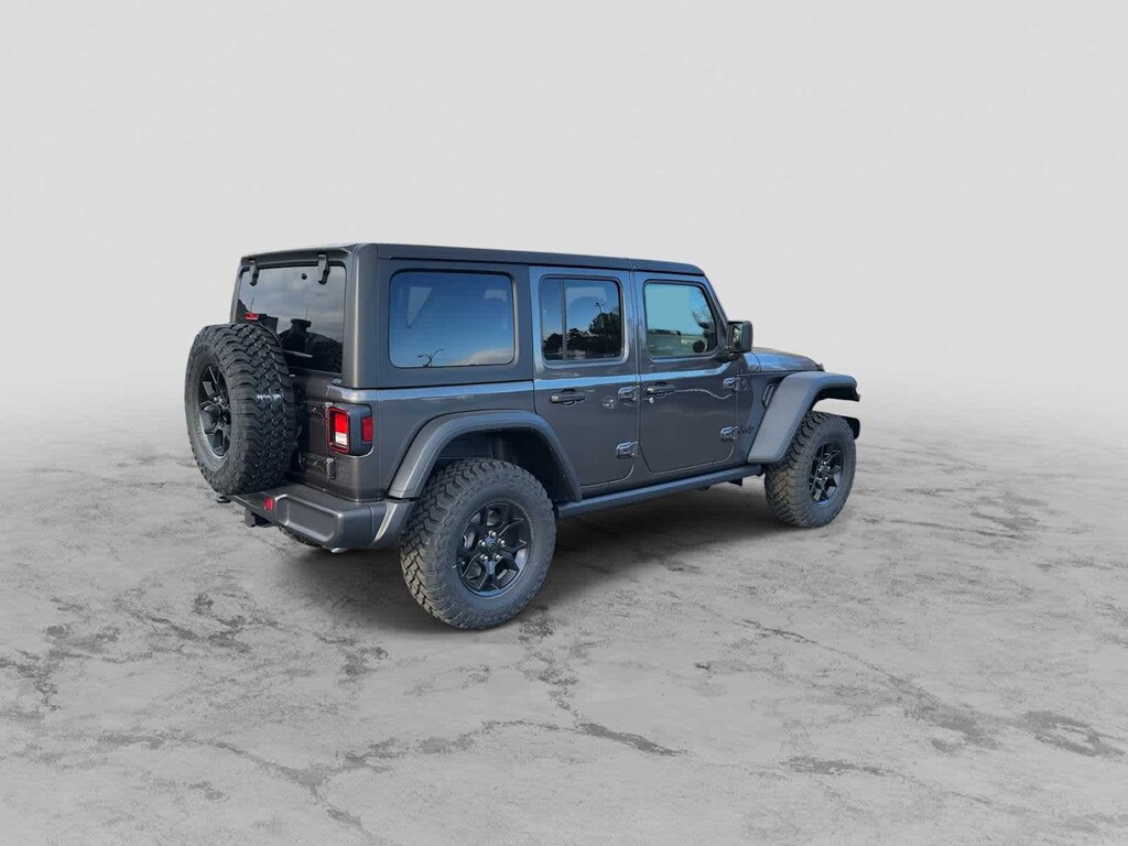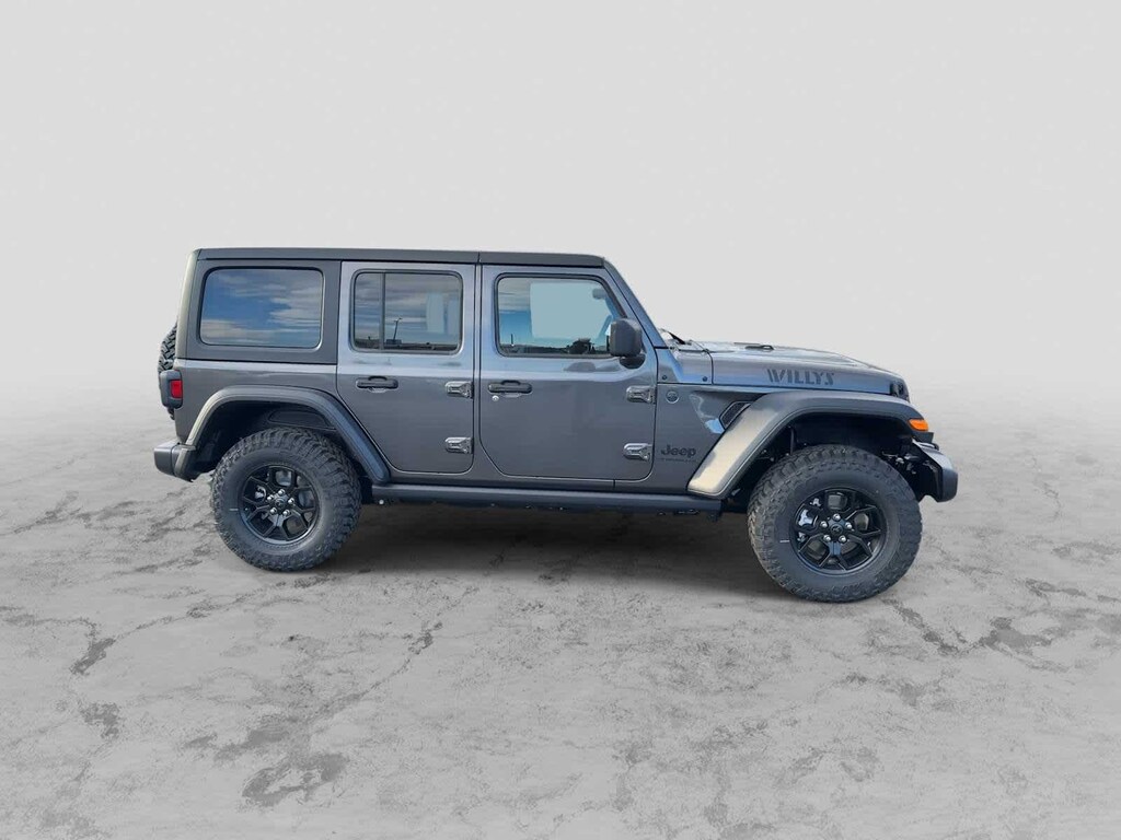 QUICK ORDER PACKAGE 24W WILLYS 3.6L V6 24V VVT UPG I Engine w/ESS, 8-Speed Automatic 850RE Transmission, 7 & 4 Pin Wiring Harness, Conventional Differential Front Axle, Power Dome Dual Vented Hood, 4-Wheel Drive Swing Gate Decal, Black Grille w/Gloss Black Rings, Injection Molded Black Rear Bumper, Dana M210 Wide HD Tube Front Axle, Daytime Running Lamps LED Accents, Front LED Fog Lamps, LED Premium Reflector Headlamps, E-Locker Rear Axle, Corning Gorilla Glass, Security Alarm, Class II Receiver Hitch, Mold In Color Bumper w/Gloss Black, Advanced Brake Assist, Automatic Headlamps, Off-Road Plus Mode, Willys Hood Decal, Full Speed Forward Collision Warning Plus, Rock Protection Sill Rails, Power Heated Mirrors, Enhanced Adaptive Cruise Control, Auxiliary Switches, Dana M220 Wide Rear Axle, 8-SPEED AUTOMATIC 850RE TRANSMISSION Adaptive Cruise Control w/Stop, Anti-Lock 4-Wheel Disc Brakes, Dana M200 Rear Axle, Selec-Speed Control, BLACK MOPAR PERFORATED LEATHER, BLACK 3-PIECE HARD TOP Freedom Panel Storage Bag, Rear Window Defroster, Rear Window Wiper/Washer, No Soft Top, CONVENIENCE GROUP Emergency/Assistance Call, 2-Door Passive Entry, Front Door Locks, Cluster 7.0 TFT Color Display, Universal Garage Door Opener, Heated Front Seats, Air Conditioning w/Auto Temp Control, Heated Steering Wheel, Air Filtering, 3.6L V6 24V VVT UPG I ENGINE W/ESS Engine Oil Cooler (STD). Jeep Willys with Granite Crystal Metallic Clearcoat exterior and Black interior features a V6 Cylinder Engine with 285 HP at 6400 RPM*. Approx. Original Base Sticker Price: $55,800*.