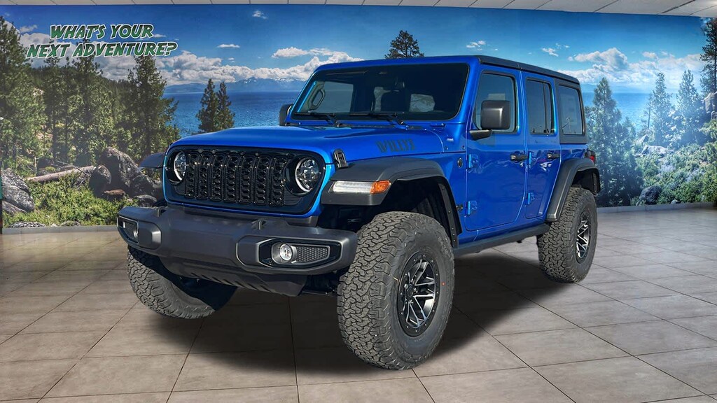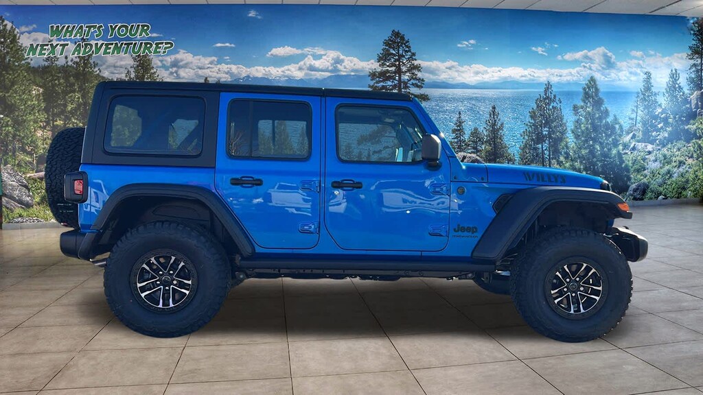 QUICK ORDER PACKAGE 24W WILLYS 3.6L V6 24V VVT UPG I Engine w/ESS, 8-Speed Automatic 850RE Transmission, 7 & 4 Pin Wiring Harness, Conventional Differential Front Axle, 4-Wheel Drive Swing Gate Decal, Black Grille, Injection Molded Black Rear Bumper, Dana M210 Wide HD Tube Front Axle, Daytime Running Lamps LED Accents, Front LED Fog Lamps, LED Premium Reflector Headlamps, E-Locker Rear Axle, Corning Gorilla Glass, Security Alarm, Class II Receiver Hitch, Mold In Color Bumper w/Gloss Black, Advanced Brake Assist, Automatic Headlamps, Off-Road Plus Mode, Willys Hood Decal, Full Speed Forward Collision Warning Plus, Rock Protection Sill Rails, Power Heated Mirrors, Enhanced Adaptive Cruise Control, Auxiliary Switches, Dana M220 Wide Rear Axle, Molded in Color Rubicon Highline Flare, Premium, 8-SPEED AUTOMATIC 850RE TRANSMISSION Adaptive Cruise Control w/Stop, Anti-Lock 4-Wheel Disc Brakes, Integrated Radar Camera Module (IRCM), Dana M200 Rear Axle, Selec-Speed Control, XTREME 35 TIRE PACKAGE LT315/70R17C 113/110S Tires, Wheel Flare Extensions, MOPAR Tire Relocation Kit, Anti-Lock 4-Wheel Disc Perf Brakes, 17 x 8 Machined Wheels w/Black Pockets, 4.56 Rear Axle Ratio, Injection Molded Black Rear Bumper, Delete 4-Wheel Drive Swing Gate Decal, 35 Tire Suspension, MOPAR Hinge-Gate Reinforcement, MOPAR Jack Spacer, Molded in Color Rubicon Highline Flare, 6,250 lbs GVWR, BLACK 3-PIECE HARD TOP Freedom Panel Storage Bag, Rear Window Defroster, Rear Window Wiper/Washer, CONVENIENCE GROUP Emergency/Assistance Call, 2-Door Passive Entry, Front Door Locks, Cluster 7.0 TFT Color Display, Universal Garage Door Opener, Heated Front Seats, Air Conditioning w/Auto Temp Control, Heated Steering Wheel, Air Filtering, ALPINE PREMIUM AUDIO SYSTEM, 3.6L V6 24V VVT UPG I ENGINE W/ESS Engine Oil Cooler (STD). Jeep Willys with Hydro Blue Pearlcoat exterior and Black interior features a V6 Cylinder Engine with 285 HP at 6400 RPM*.