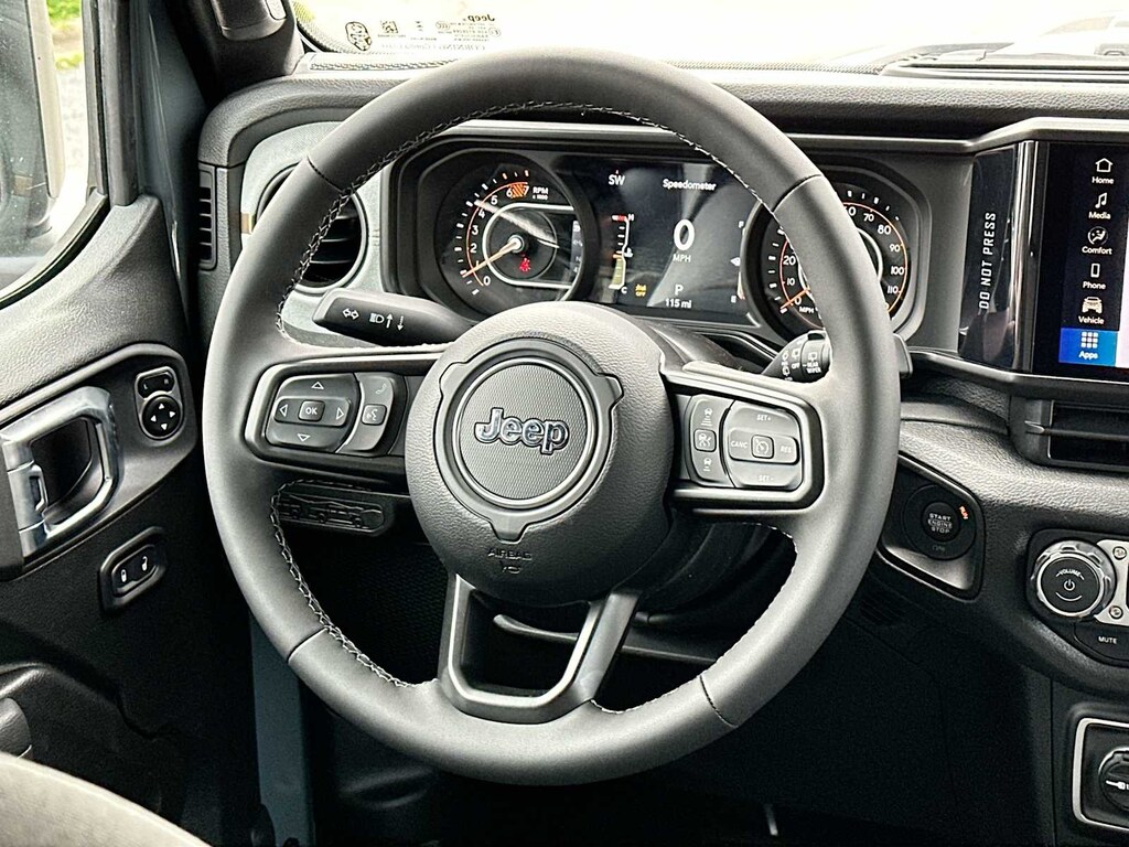 QUICK ORDER PACKAGE 24W WILLYS 3.6L V6 24V VVT UPG I Engine w/ESS, 8-Speed Automatic 850RE Transmission, 7 & 4 Pin Wiring Harness, Conventional Differential Front Axle, 4-Wheel Drive Swing Gate Decal, Black Grille w/Gloss Black Rings, Injection Molded Black Rear Bumper, Dana M210 Wide HD Tube Front Axle, Daytime Running Lamps LED Accents, Front LED Fog Lamps, LED Premium Reflector Headlamps, E-Locker Rear Axle, Corning Gorilla Glass, Security Alarm, Class II Receiver Hitch, Mold In Color Bumper w/Gloss Black, Advanced Brake Assist, Automatic Headlamps, Off-Road Plus Mode, Willys Hood Decal, Full Speed Forward Collision Warning Plus, Rock Protection Sill Rails, Power Heated Mirrors, Enhanced Adaptive Cruise Control, Auxiliary Switches, Dana M220 Wide Rear Axle, Molded in Color Rubicon, 8-SPEED AUTOMATIC 850RE TRANSMISSION Adaptive Cruise Control w/Stop, Anti-Lock 4-Wheel Disc Brakes, Integrated Radar Camera Module (IRCM), Dana M200 Rear Axle, Selec-Speed Control, XTREME 35 TIRE PACKAGE LT315/70R17C 113/110S Tires, Wheel Flare Extensions, MOPAR Tire Relocation Kit, Anti-Lock 4-Wheel Disc Perf Brakes, 17 x 8 Machined Wheels w/Black Pockets, 4.56 Rear Axle Ratio, Injection Molded Black Rear Bumper, 35 Tire Suspension, MOPAR Hinge-Gate Reinforcement, Delete 4-Wheel Drive Swing Gate Decal, MOPAR Jack Spacer, Molded in Color Rubicon Highline Flare, 6,250 lbs GVWR, BLACK 3-PIECE HARD TOP Freedom Panel Storage Bag, Rear Window Defroster, Rear Window Wiper/Washer, CONVENIENCE GROUP Emergency/Assistance Call, 2-Door Passive Entry, Front Door Locks, Cluster 7.0 TFT Color Display, Universal Garage Door Opener, Heated Front Seats, Air Conditioning w/Auto Temp Control, Heated Steering Wheel, Air Filtering, 3.6L V6 24V VVT UPG I ENGINE W/ESS Engine Oil Cooler (STD). Jeep Willys with Anvil Clearcoat exterior and Black interior features a V6 Cylinder Engine with 285 HP at 6400 RPM*.