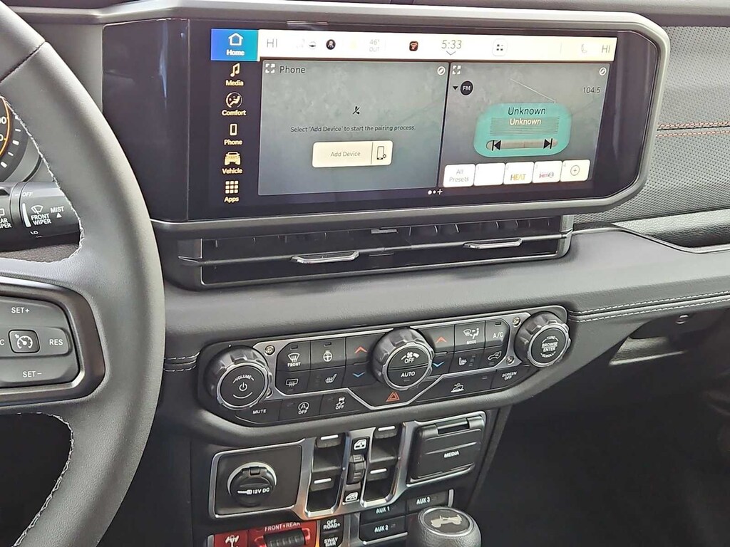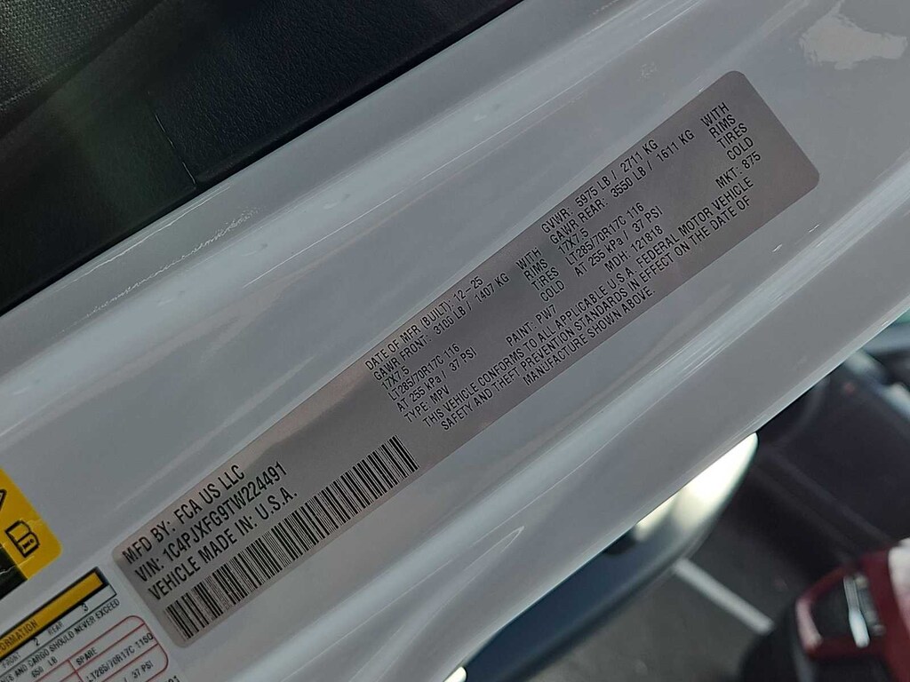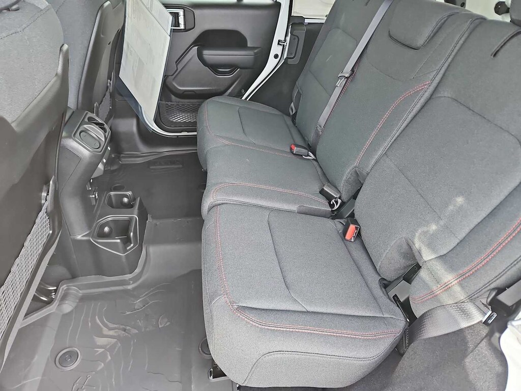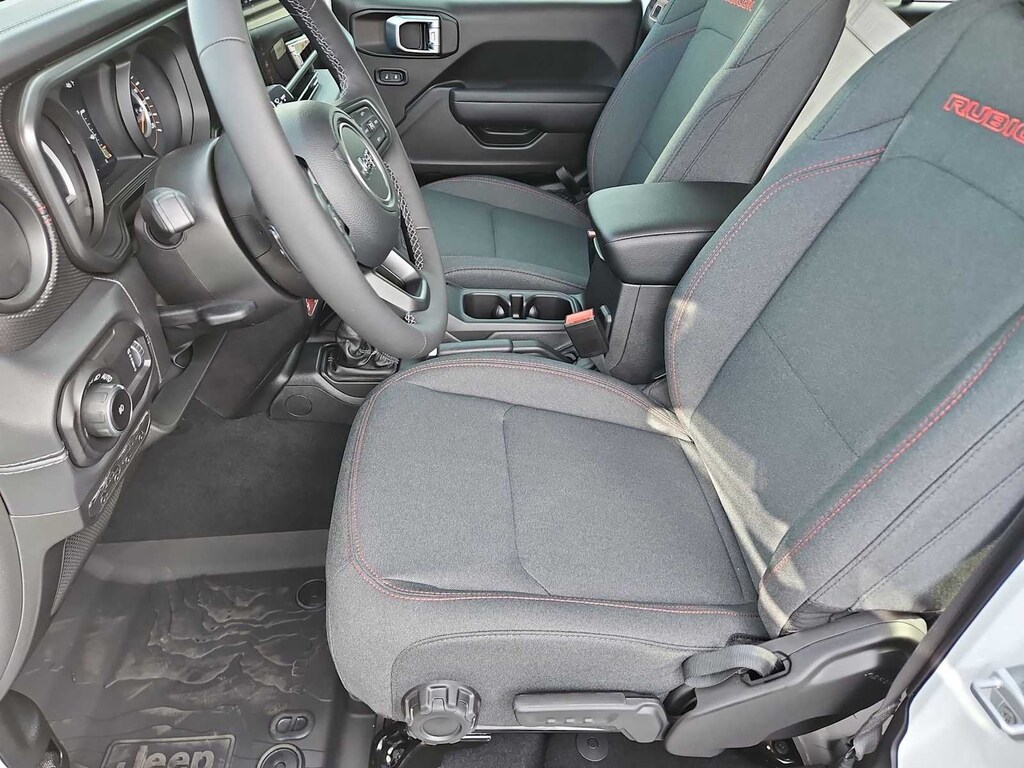 This Jeep comes with:Convenience Group (Heated Front Seats, Heated Steering Wheel, and Universal Garage Door Opener), Quick Order Package 24R Rubicon, 12.3 Touchscreen Display, 4-Wheel Disc Brakes, 4.10 Rear Axle Ratio, 4G LTE Wi-Fi Hot Spot, 8 Speakers, ABS brakes, Air Conditioning, Alloy wheels, AM/FM radio: SiriusXM with 360L, Apple CarPlay, Apple CarPlay/Android Auto, Automatic temperature control, Aux Battery, Auxiliary Switches, Black 3-Piece Hard Top, Brake assist, Class II Receiver Hitch, Cloth Low-Back Bucket Seats, Compass, Connectivity - US/Canada, Delay-off headlights, Driver door bin, Driver vanity mirror, Dual front impact airbags, Dual front side impact airbags, Electronic Stability Control, Emergency communication system: Jeep Connect, For More Info, Call 800-643-2112, Freedom Panel Storage Bag, Front anti-roll bar, Front Bucket Seats, Front Center Armrest w/Storage, Front dual zone A/C, Front fog lights, Front License Plate Bracket, Front reading lights, Fully automatic headlights, Google Android Auto, Heated door mirrors, Illuminated entry, Integrated Center Stack Radio, Integrated roll-over protection, Jeep Trail Rated Kit, Low tire pressure warning, MOPAR All-Weather Floor Mats, Non-Lock Fuel Cap Without Discriminator, Occupant sensing airbag, Outside temperature display, Overhead airbag, Panic alarm, ParkView Rear Back-Up Camera, Passenger door bin, Passenger vanity mirror, Performance Suspension, Power door mirrors, Power steering, Power windows, Radio data system, Radio: Uconnect 5 with 12.3 Display, Rear anti-roll bar, Rear reading lights, Rear Window Defroster, Rear Window Wiper/Washer, Remote keyless entry, Security system, SiriusXM Radio Service, SiriusXM with 360L, Speed control, Split folding rear seat, Steering wheel mounted audio controls, Stop-Start Dual Battery System, Tachometer, Telescoping steering wheel, Tilt steering wheel, Traction control, Trip computer, Variably intermittent wipers, Voltmeter, and Wheels: 17 x 7.5 Machined/Painted Black. Prices do not include Protection Package + includes Vehicle Tint at $599, Door Edge Guards at $399, Wheel Locks at $199, PermaPlate at $700, LoJack at $1,199 and Etch at $899. Price does not include $699 Dealer Documentation Fee, taxes, and license fee.