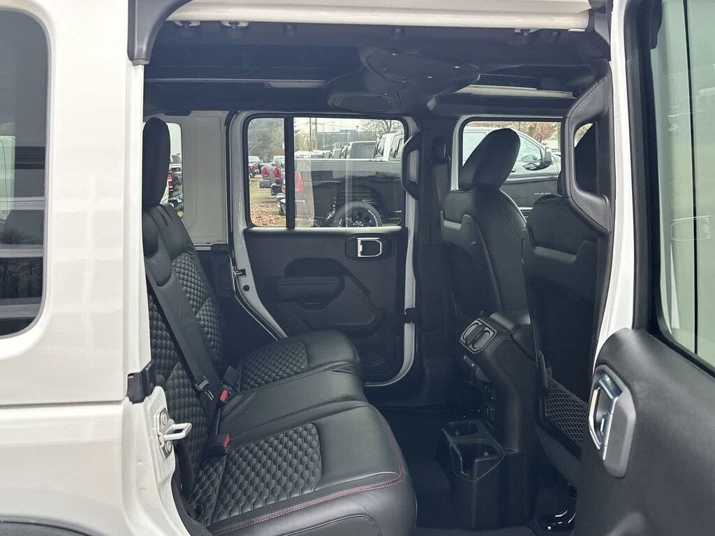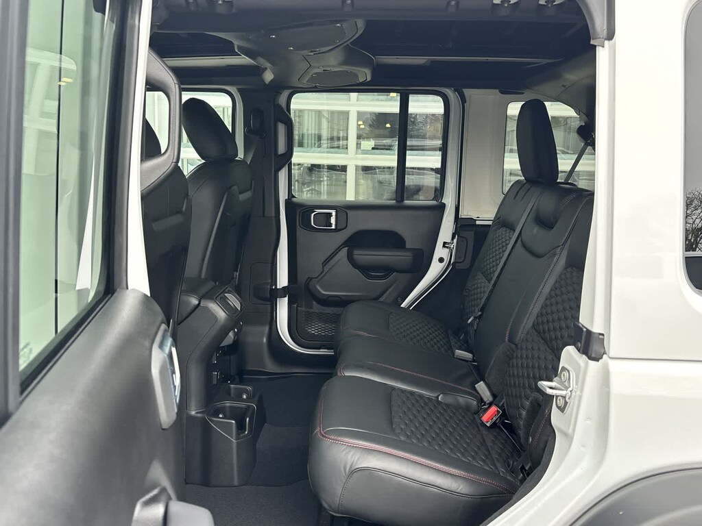 8-SPEED AUTOMATIC 850RE TRANSMISSION Adaptive Cruise Control w/Stop, Selec-Speed Control, SKY ONE-TOUCH POWER TOP Rear Window Defroster, Rear Window Wiper/Washer, Removable Rear Quarter Windows, Power Top Quarter Window Storage Bag, BLACK MOPAR STITCHED LEATHER, ALPINE PREMIUM AUDIO SYSTEM, TECHNOLOGY GROUP Integrated Off-Road Camera, HD Radio, Rear View Auto Dim Mirror, Integrated Voice Command w/Bluetooth®, Uconnect 5 Nav w/12.3 Display, GPS Navigation, Connected Travel & Traffic Services, CONVENIENCE GROUP Heated Steering Wheel, Universal Garage Door Opener, Heated Front Seats, 3.6L V6 24V VVT UPG I ENGINE W/ESS Engine Oil Cooler (STD). Jeep Rubicon with Bright White Clearcoat exterior and Black interior features a V6 Cylinder Engine with 285 HP at 6400 RPM*.