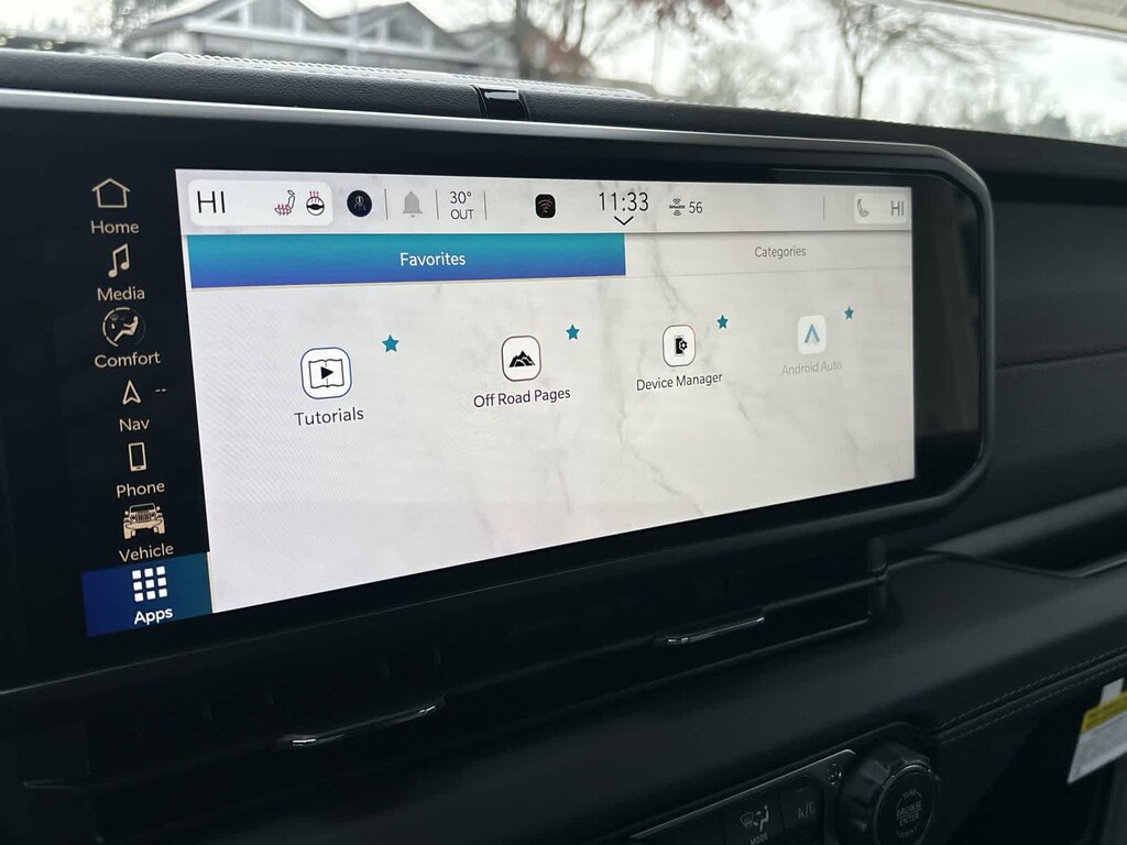 Back-Up Camera, iPod/MP3 Input, Trailer Hitch, Keyless Start, Dual Zone A/C, Apple CarPlay®, Smart Device Integration, Brake Actuated Limited Slip Differential, WiFi Hotspot. MP3 Player, 4x4, Onboard Communications System, Aluminum Wheels, Keyless Entry.