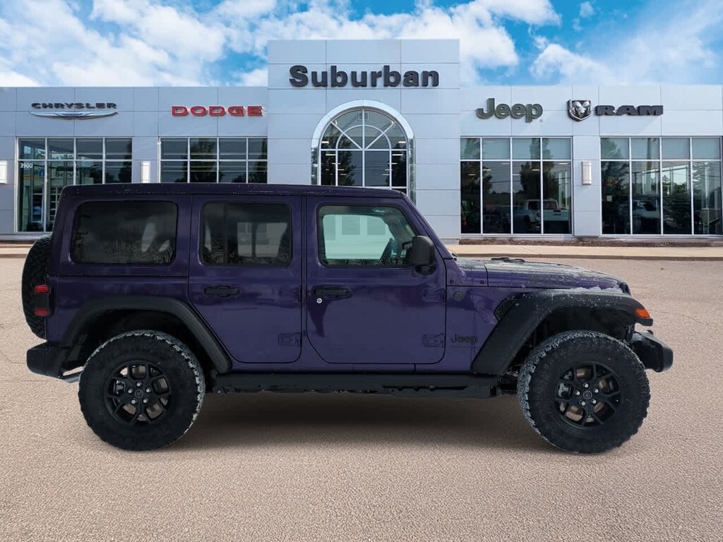 se habla Espanol! Our 2026 Jeep Wrangler Willys 4 Door 4X4 with the Convenience Pack in Reign rides with renowned capability that true adventurers love! Driven by a TurboCharged 2.0 Liter 4 Cylinder supplying 270hp to an 8 Speed Automatic transmission with an Off-Road Plus mode for enhanced trail performance. Dana axles and an electronic locking rear differential help you conquer almost any conditions, and this Four Wheel Drive SUV returns nearly 23mpg on the highway. Eye-catching Willys hood graphics help our Wrangler grab attention with LED lighting, fog lamps, alloy wheels, fender flares, a sport bar, and a fantastic open-air driving experience when you drop the top, fold down the Gorilla Glass windshield, and remove the doors!