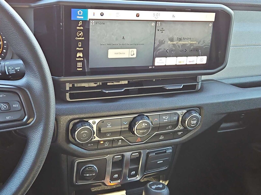 This Jeep comes with:Quick Order Package 22B Sport, 12.3 Touchscreen Display, 3.45 Overall Top Gear Ratio, 4-Wheel Disc Brakes, 4G LTE Wi-Fi Hot Spot, 8 Speakers, ABS brakes, Air Conditioning, AM/FM radio: SiriusXM with 360L, Apple CarPlay, Apple CarPlay/Android Auto, Aux Battery, Black 3-Piece Hard Top, Brake assist, Cloth Low-Back Bucket Seats, Compass, Connectivity - US/Canada, Delay-off headlights, Driver door bin, Driver vanity mirror, Dual front impact airbags, Dual front side impact airbags, Electronic Stability Control, For More Info, Call 800-643-2112, Freedom Panel Storage Bag, Front anti-roll bar, Front Bucket Seats, Front Center Armrest w/Storage, Front fog lights, Front reading lights, Google Android Auto, Illuminated entry, Integrated Center Stack Radio, Integrated roll-over protection, Low tire pressure warning, MOPAR All-Weather Floor Mats, Non-Lock Fuel Cap Without Discriminator, Normal Duty Suspension, Occupant sensing airbag, Outside temperature display, Overhead airbag, Panic alarm, ParkView Rear Back-Up Camera, Passenger door bin, Passenger vanity mirror, Power steering, Power windows, Radio data system, Radio: Uconnect 5 with 12.3 Display, Rear anti-roll bar, Rear reading lights, Rear Window Defroster, Rear Window Wiper/Washer, Remote keyless entry, SiriusXM Radio Service, SiriusXM with 360L, Speed control, Steering wheel mounted audio controls, Stop-Start Dual Battery System, Tachometer, Telescoping steering wheel, Tilt steering wheel, Traction control, Trip computer, Variably intermittent wipers, and Wheels: 17 x 7.5 Black Steel Styled. Prices do not include Protection Package + includes Vehicle Tint at $599, Door Edge Guards at $399, Wheel Locks at $199, PermaPlate at $700, LoJack at $1,199 and Etch at $899. Price does not include $699 Dealer Documentation Fee, taxes, and license fee.