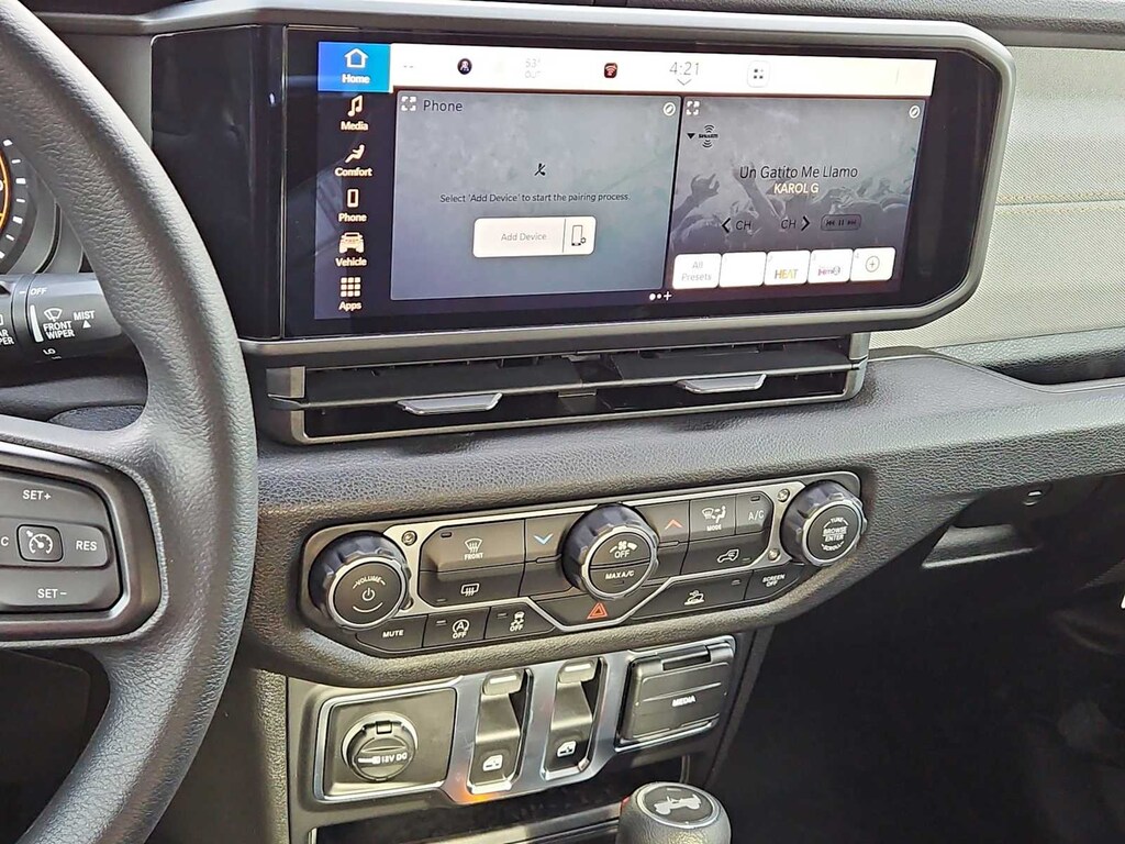 This Jeep comes with:Quick Order Package 22B Sport, 12.3 Touchscreen Display, 3.45 Overall Top Gear Ratio, 4-Wheel Disc Brakes, 4G LTE Wi-Fi Hot Spot, 8 Speakers, ABS brakes, Air Conditioning, AM/FM radio: SiriusXM with 360L, Apple CarPlay, Apple CarPlay/Android Auto, Aux Battery, Black 3-Piece Hard Top, Brake assist, Cloth Low-Back Bucket Seats, Compass, Connectivity - US/Canada, Delay-off headlights, Driver door bin, Driver vanity mirror, Dual front impact airbags, Dual front side impact airbags, Electronic Stability Control, For More Info, Call 800-643-2112, Freedom Panel Storage Bag, Front anti-roll bar, Front Bucket Seats, Front Center Armrest w/Storage, Front fog lights, Front reading lights, Google Android Auto, Illuminated entry, Integrated Center Stack Radio, Integrated roll-over protection, Low tire pressure warning, MOPAR All-Weather Floor Mats, Non-Lock Fuel Cap Without Discriminator, Normal Duty Suspension, Occupant sensing airbag, Outside temperature display, Overhead airbag, Panic alarm, ParkView Rear Back-Up Camera, Passenger door bin, Passenger vanity mirror, Power steering, Power windows, Radio data system, Radio: Uconnect 5 with 12.3 Display, Rear anti-roll bar, Rear reading lights, Rear Window Defroster, Rear Window Wiper/Washer, Remote keyless entry, SiriusXM Radio Service, SiriusXM with 360L, Speed control, Steering wheel mounted audio controls, Stop-Start Dual Battery System, Tachometer, Telescoping steering wheel, Tilt steering wheel, Traction control, Trip computer, Variably intermittent wipers, and Wheels: 17 x 7.5 Black Steel Styled. Prices do not include Protection Package + includes Vehicle Tint at $599, Door Edge Guards at $399, Wheel Locks at $199, PermaPlate at $700, LoJack at $1,199 and Etch at $899. Price does not include $699 Dealer Documentation Fee, taxes, and license fee.