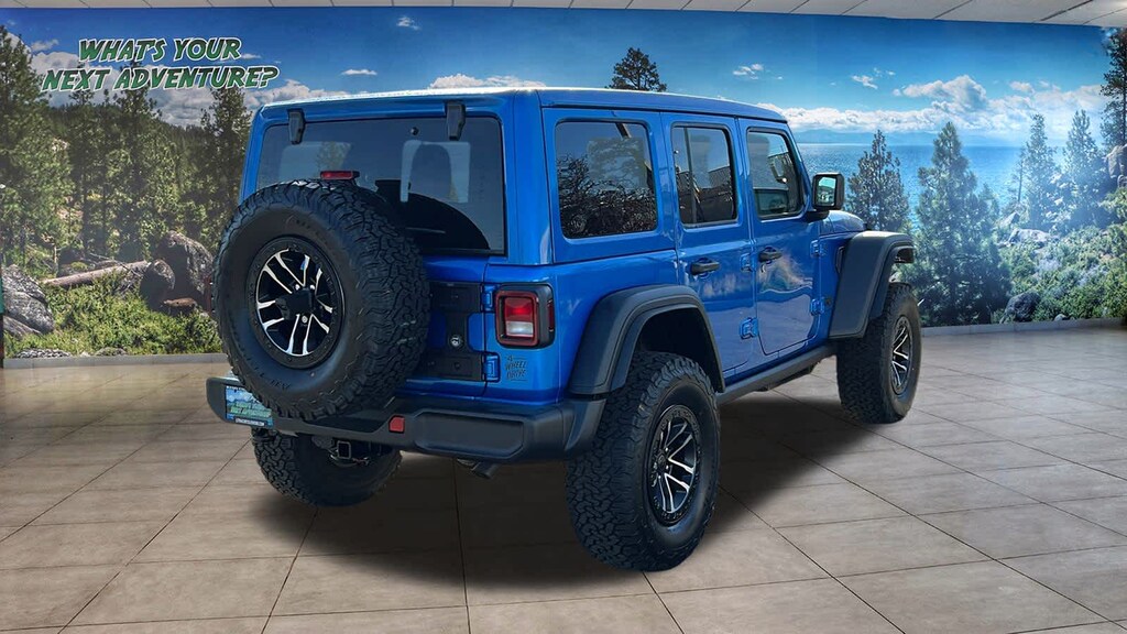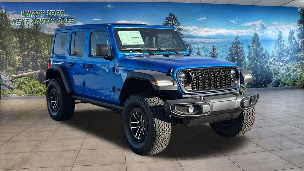QUICK ORDER PACKAGE 22W WILLYS 2.0L I4 DOHC DI Turbo Engine w/ESS, 8-Speed Automatic 850RE Transmission, 7 & 4 Pin Wiring Harness, Conventional Differential Front Axle, 4-Wheel Drive Swing Gate Decal, Black Grille, Injection Molded Black Rear Bumper, Dana M210 Wide HD Tube Front Axle, Daytime Running Lamps LED Accents, Front LED Fog Lamps, LED Premium Reflector Headlamps, E-Locker Rear Axle, Corning Gorilla Glass, Security Alarm, Class II Receiver Hitch, Mold In Color Bumper w/Gloss Black, Advanced Brake Assist, Automatic Headlamps, Off-Road Plus Mode, Willys Hood Decal, Full Speed Forward Collision Warning Plus, Rock Protection Sill Rails, Power Heated Mirrors, Enhanced Adaptive Cruise Control, Auxiliary Switches, Dana M220 Wide Rear Axle, Molded in Color Rubicon Highline Flare, Premium, XTREME 35 TIRE PACKAGE LT315/70R17C 113/110S Tires, Wheel Flare Extensions, MOPAR Tire Relocation Kit, Anti-Lock 4-Wheel Disc Perf Brakes, 17 x 8 Machined Wheels w/Black Pockets, 4.56 Rear Axle Ratio, Injection Molded Black Rear Bumper, Delete 4-Wheel Drive Swing Gate Decal, 35 Tire Suspension, MOPAR Hinge-Gate Reinforcement, MOPAR Jack Spacer, Molded in Color Rubicon Highline Flare, 6,250 lbs GVWR, SKY 1-TOUCH POWER TOP Rear Window Defroster, Rear Window Wiper/Washer, Removable Rear Quarter Windows, Power Top Quarter Window Storage Bag, 8-SPEED AUTOMATIC 850RE TRANSMISSION Adaptive Cruise Control w/Stop, Anti-Lock 4-Wheel Disc Brakes, Integrated Radar Camera Module (IRCM), Dana M200 Rear Axle, Selec-Speed Control, CONVENIENCE GROUP Emergency/Assistance Call, 2-Door Passive Entry, Front Door Locks, Cluster 7.0 TFT Color Display, Universal Garage Door Opener, Heated Front Seats, Air Conditioning w/Auto Temp Control, Heated Steering Wheel, Air Filtering, ALPINE PREMIUM AUDIO SYSTEM, 2.0L I4 DOHC DI TURBO ENGINE W/ESS. Jeep Willys with Hydro Blue Pearlcoat exterior and Black interior features a 4 Cylinder Engine with 270 HP at 5250 RPM*.