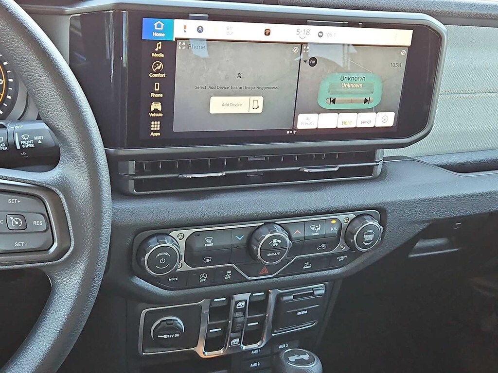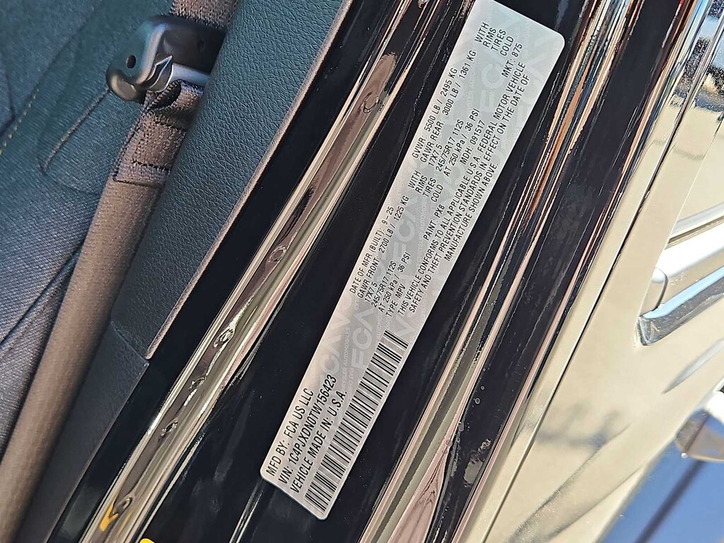 This Jeep comes with:ABS brakes, Compass, Electronic Stability Control, Illuminated entry, Low tire pressure warning, ParkView Rear Back-Up Camera, Remote keyless entry, Traction control, 12.3 Touchscreen Display, 3.45 Overall Top Gear Ratio, 4-Wheel Disc Brakes, 4G LTE Wi-Fi Hot Spot, 8 Speakers, Air Conditioning, AM/FM radio: SiriusXM with 360L, Apple CarPlay, Apple CarPlay/Android Auto, Aux Battery, Brake assist, Connectivity - US/Canada, Delay-off headlights, Driver door bin, Driver vanity mirror, Dual front impact airbags, Dual front side impact airbags, For More Info, Call 800-643-2112, Front anti-roll bar, Front Bucket Seats, Front Center Armrest w/Storage, Front fog lights, Front reading lights, Google Android Auto, Integrated Center Stack Radio, Integrated roll-over protection, Non-Lock Fuel Cap Without Discriminator, Normal Duty Suspension, Occupant sensing airbag, Outside temperature display, Overhead airbag, Panic alarm, Passenger door bin, Passenger vanity mirror, Power steering, Power windows, Radio data system, Radio: Uconnect 5 with 12.3 Display, Rear anti-roll bar, Rear reading lights, SiriusXM Radio Service, SiriusXM with 360L, Speed control, Split folding rear seat, Steering wheel mounted audio controls, Stop-Start Dual Battery System, Tachometer, Telescoping steering wheel, Tilt steering wheel, Trip computer, Variably intermittent wipers, and Wheels: 17 x 7.5 Black Steel Styled. Prices do not include Protection Package + includes Vehicle Tint at $599, Door Edge Guards at $399, Wheel Locks at $199, PermaPlate at $700, LoJack at $1,199 and Etch at $899. Price does not include $699 Dealer Documentation Fee, taxes, and license fee. Price includes: $1000 - 2026 West BC Conquest Bonus Cash. Exp. 02/02/2026