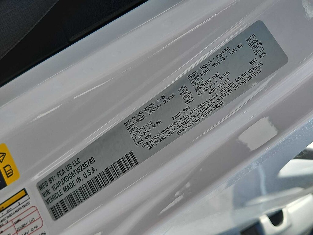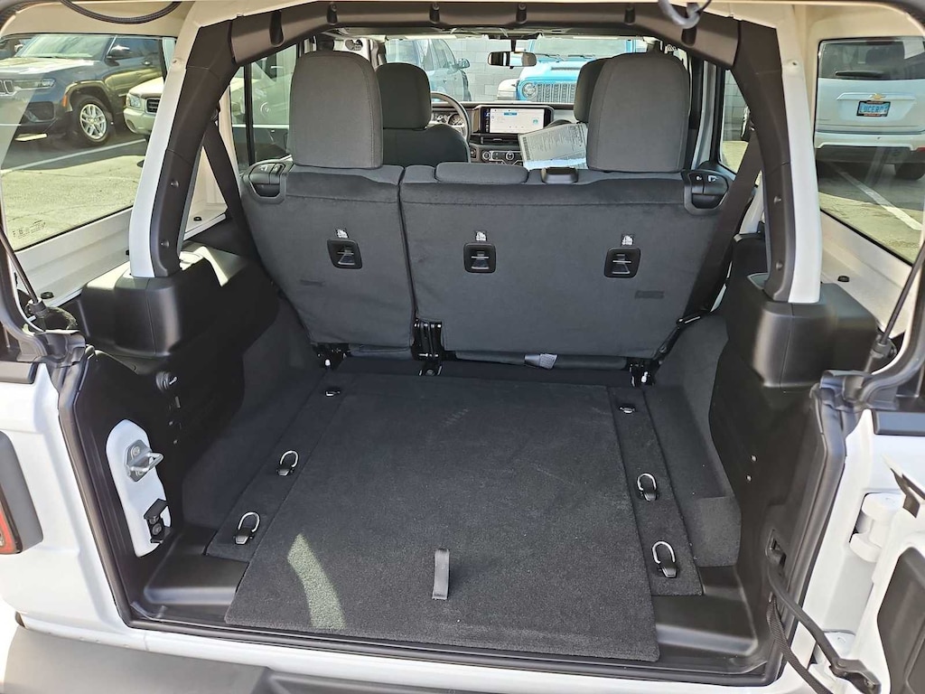This Jeep comes with:Quick Order Package 24B Sport, 12.3 Touchscreen Display, 3.45 Overall Top Gear Ratio, 4-Wheel Disc Brakes, 4G LTE Wi-Fi Hot Spot, 8 Speakers, ABS brakes, Air Conditioning, AM/FM radio: SiriusXM with 360L, Apple CarPlay, Apple CarPlay/Android Auto, Aux Battery, Black 3-Piece Hard Top, Brake assist, Compass, Connectivity - US/Canada, Delay-off headlights, Driver door bin, Driver vanity mirror, Dual front impact airbags, Dual front side impact airbags, Electronic Stability Control, For More Info, Call 800-643-2112, Freedom Panel Storage Bag, Front anti-roll bar, Front Bucket Seats, Front Center Armrest w/Storage, Front fog lights, Front reading lights, Google Android Auto, Illuminated entry, Integrated Center Stack Radio, Integrated roll-over protection, Jeep Trail Rated Kit, Low tire pressure warning, Manufacture Statement of Origin, MOPAR All-Weather Floor Mats, No Soft Top, Non-Lock Fuel Cap Without Discriminator, Normal Duty Suspension, Occupant sensing airbag, Outside temperature display, Overhead airbag, Panic alarm, ParkView Rear Back-Up Camera, Passenger door bin, Passenger vanity mirror, Power steering, Power windows, Radio data system, Radio: Uconnect 5 with 12.3 Display, Rear anti-roll bar, Rear reading lights, Rear Window Defroster, Rear Window Wiper/Washer, Remote keyless entry, SiriusXM Radio Service, SiriusXM with 360L, Speed control, Split folding rear seat, Steering wheel mounted audio controls, Stop-Start Dual Battery System, Tachometer, Telescoping steering wheel, Tilt steering wheel, Traction control, Trip computer, Variably intermittent wipers, and Wheels: 17 x 7.5 Black Steel Styled. Prices do not include Protection Package + includes Vehicle Tint at $599, Door Edge Guards at $399, Wheel Locks at $199, PermaPlate at $700, LoJack at $1,199 and Etch at $899. Price does not include $699 Dealer Documentation Fee, taxes, and license fee.