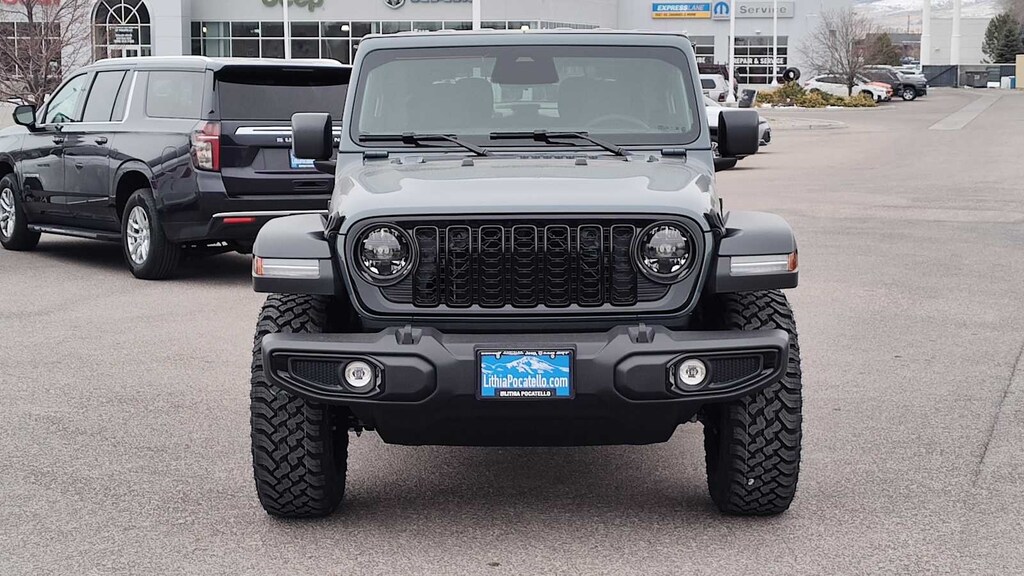 QUICK ORDER PACKAGE 22W WILLYS 2.0L I4 DOHC DI Turbo Engine w/ESS, 8-Speed Automatic 850RE Transmission, 7 & 4 Pin Wiring Harness, Conventional Differential Front Axle, 4-Wheel Drive Swing Gate Decal, Black Grille w/Gloss Black Rings, Injection Molded Black Rear Bumper, Dana M210 Wide HD Tube Front Axle, Daytime Running Lamps LED Accents, Front LED Fog Lamps, LED Premium Reflector Headlamps, E-Locker Rear Axle, Corning Gorilla Glass, Security Alarm, Class II Receiver Hitch, Mold In Color Bumper w/Gloss Black, Advanced Brake Assist, Automatic Headlamps, Off-Road Plus Mode, Willys Hood Decal, Full Speed Forward Collision Warning Plus, Rock Protection Sill Rails, Power Heated Mirrors, Enhanced Adaptive Cruise Control, Auxiliary Switches, Dana M220 Wide Rear Axle, Molded in Color Rubicon, 8-SPEED AUTOMATIC 850RE TRANSMISSION Adaptive Cruise Control w/Stop, Anti-Lock 4-Wheel Disc Brakes, Selec-Speed Control, BLACK 3-PIECE HARD TOP Freedom Panel Storage Bag, Rear Window Defroster, Rear Window Wiper/Washer, CONVENIENCE GROUP Emergency/Assistance Call, 2-Door Passive Entry, Front Door Locks, Cluster 7.0 TFT Color Display, Universal Garage Door Opener, Heated Front Seats, Air Conditioning w/Auto Temp Control, Heated Steering Wheel, Air Filtering, 2.0L I4 DOHC DI TURBO ENGINE W/ESS. Jeep Willys with Anvil Clearcoat exterior and Black interior features a 4 Cylinder Engine with 270 HP at 5250 RPM*.