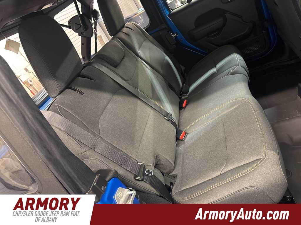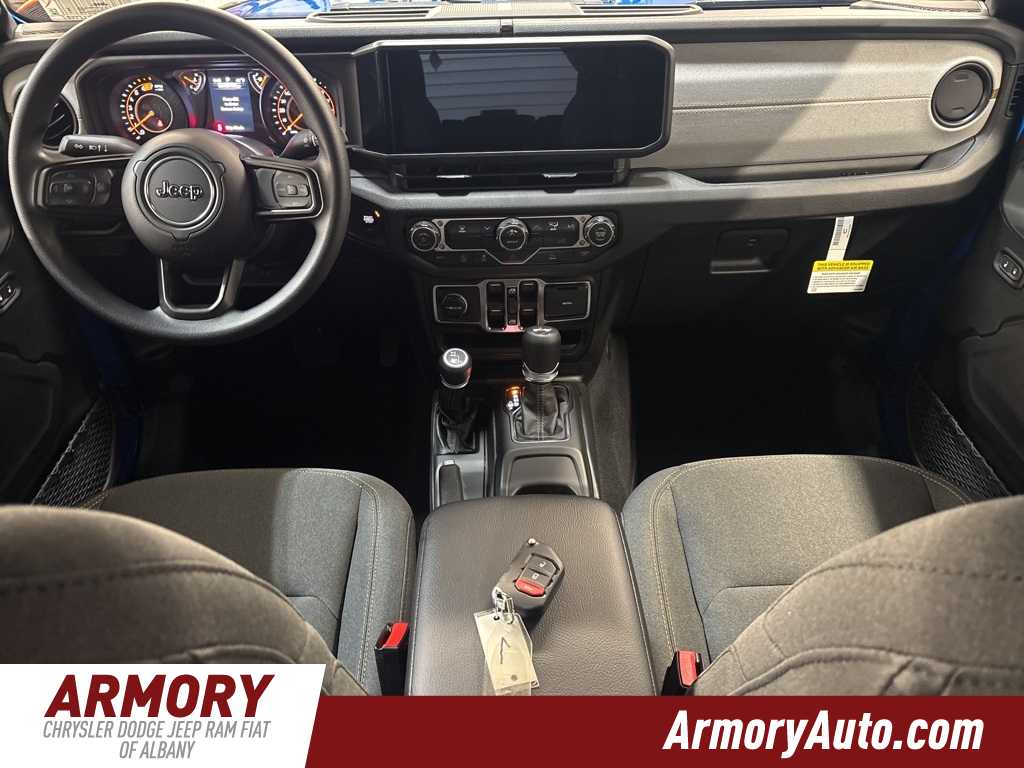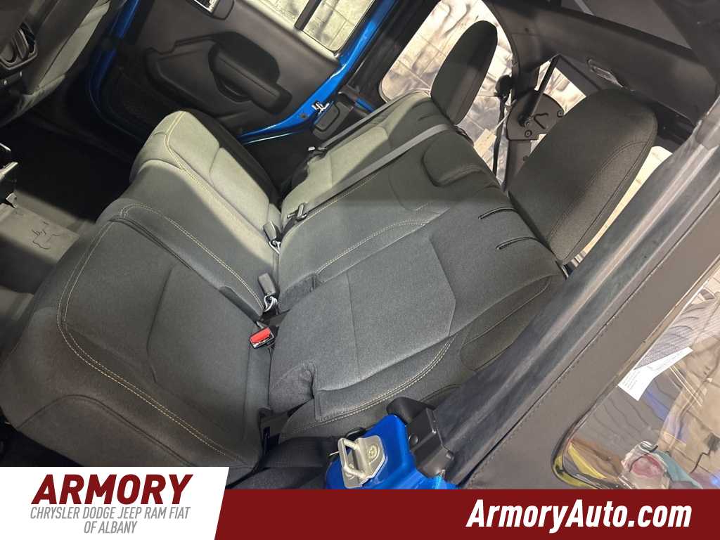 Wrangler Sport is nicely equipped with Quick Order Package 24B Sport, 12.3 Touchscreen Display, 3.45 Overall Top Gear Ratio, 4-Wheel Disc Brakes, 4G LTE Wi-Fi Hot Spot, 8 Speakers, ABS brakes, Air Conditioning, AM/FM radio: SiriusXM with 360L, Apple CarPlay, Apple CarPlay/Android Auto, Aux Battery, Brake assist, Cloth Low-Back Bucket Seats, Compass, Connectivity - US/Canada, Delay-off headlights, Driver door bin, Driver vanity mirror, Dual front impact airbags, Dual front side impact airbags, Electronic Stability Control, For More Info, Call 800-643-2112, Front anti-roll bar, Front Bucket Seats, Front Center Armrest w/Storage, Front fog lights, Front reading lights, Google Android Auto, Illuminated entry, Integrated Center Stack Radio, Integrated roll-over protection, Jeep Trail Rated Kit, Low tire pressure warning, MOPAR All-Weather Floor Mats, Myflexcare Service Plan, Non-Lock Fuel Cap Without Discriminator, Normal Duty Suspension, Occupant sensing airbag, Outside temperature display, Overhead airbag, Panic alarm, ParkView Rear Back-Up Camera, Passenger door bin, Passenger vanity mirror, Power steering, Power windows, Radio data system, Radio: Uconnect 5 with 12.3 Display, Rear anti-roll bar, Rear reading lights, Remote keyless entry, SiriusXM Radio Service, SiriusXM with 360L, Speed control, Split folding rear seat, Steering wheel mounted audio controls, Stop-Start Dual Battery System, Tachometer, Telescoping steering wheel, Tilt steering wheel, Traction control, Trip computer, Variably intermittent wipers, and Wheels: 17 x 7.5 Black Steel Styled. Price includes: $1500 - 2026 National Select Inventory Bonus Cash . Exp. 01/04/2027