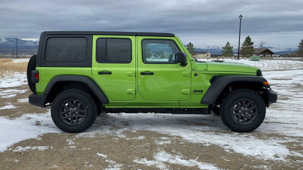 8-SPEED AUTOMATIC 850RE TRANSMISSION Adaptive Cruise Control w/Stop, Anti-Lock 4-Wheel Disc Brakes, Integrated Radar Camera Module (IRCM), Dana M200 Rear Axle, Selec-Speed Control, QUICK ORDER PACKAGE 22S SPORT S 2.0L I4 DOHC DI Turbo Engine w/ESS, 8-Speed Automatic 850RE Transmission, Advanced Brake Assist, Power Heated Mirrors, Enhanced Adaptive Cruise Control, Automatic Headlamps, Corning Gorilla Glass, Premium Wrapped Steering Wheel, Security Alarm, Sun Visors w/Illuminated Vanity Mirrors, Full Speed Forward Collision Warning Plus, BLACK 3-PIECE HARD TOP Freedom Panel Storage Bag, Rear Window Defroster, Rear Window Wiper/Washer, CONVENIENCE GROUP Emergency/Assistance Call, 2-Door Passive Entry, Front Door Locks, Cluster 7.0 TFT Color Display, Universal Garage Door Opener, Heated Front Seats, Air Conditioning w/Auto Temp Control, Heated Steering Wheel, Air Filtering, TRAILER TOW & AUX SWITCH GROUP Class II Receiver Hitch, 7 & 4 Pin Wiring Harness, Auxiliary Switches, 2.0L I4 DOHC DI TURBO ENGINE W/ESS. Jeep Sport S with Mojito Clearcoat exterior and Black interior features a 4 Cylinder Engine with 270 HP at 5250 RPM*.