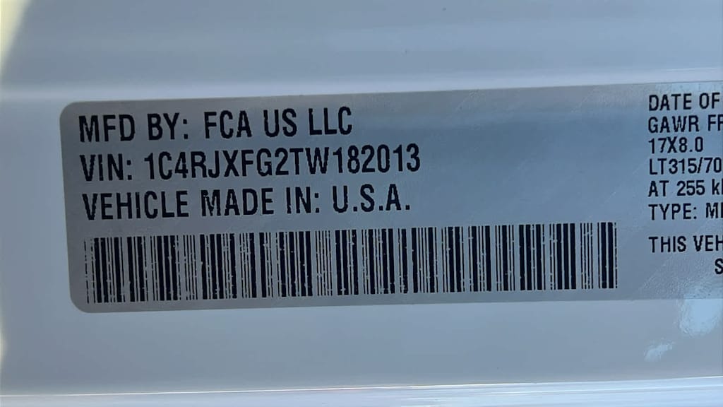 - 1C4RJXFG2TW182013
