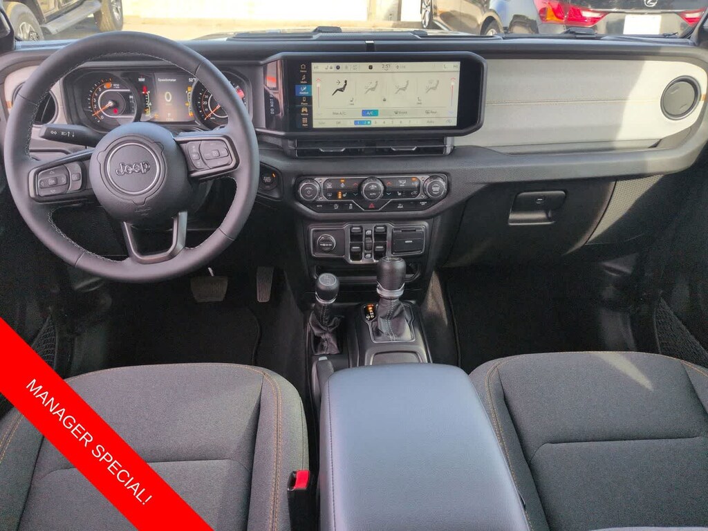 Wrangler Sport S is nicely equipped with Convenience Group (2-Door Passive Entry, Front Door Locks, Air Conditioning with Auto Temp Control, Air Filtering, Cluster 7.0 TFT Color Display, Emergency/Assistance Call, Heated Front Seats, Heated Steering Wheel, and Universal Garage Door Opener), Quick Order Package 22S Sport S (Advanced Brake Assist, Automatic Headlamps, Corning Gorilla Glass, Deep Tint Sunscreen Windows, Enhanced Adaptive Cruise Control, Full Speed Forward Collision Warning Plus, Power Heated Mirrors, Premium Wrapped Steering Wheel, Security Alarm, Sun Visors with Illuminated Vanity Mirrors, and Wheels: 17 x 7.5 Gray), 12.3 Touchscreen Display, 3.45 Overall Top Gear Ratio, 4-Wheel Disc Brakes, 4G LTE Wi-Fi Hot Spot, 8 Speakers, ABS brakes, Air Conditioning, Alpine Premium Audio System, AM/FM radio: SiriusXM with 360L, Apple CarPlay, Apple CarPlay/Android Auto, Aux Battery, Black 3-Piece Hard Top, Brake assist, Compass, Connectivity - US/Canada, Delay-off headlights, Driver door bin, Driver vanity mirror, Dual front impact airbags, Dual front side impact airbags, Electronic Stability Control, For More Info, Call 800-643-2112, Freedom Panel Storage Bag, Front anti-roll bar, Front Bucket Seats, Front Center Armrest w/Storage, Front fog lights, Front reading lights, Google Android Auto, Illuminated entry, Integrated Center Stack Radio, Integrated roll-over protection, Low tire pressure warning, No Soft Top, Non-Lock Fuel Cap Without Discriminator, Normal Duty Suspension, Occupant sensing airbag, Outside temperature display, Overhead airbag, Panic alarm, ParkView Rear Back-Up Camera, Passenger door bin, Passenger vanity mirror, Power steering, Power windows, Radio data system, Radio: Uconnect 5 with 12.3 Display, Rear anti-roll bar, Rear reading lights, Rear Window Defroster, Rear Window Wiper/Washer, Remote keyless entry, SiriusXM Radio Service, SiriusXM with 360L, Speed control, Split folding rear seat, Steering wheel mounted audio controls, Stop-Start Dual Battery System, Tachometer, Telescoping steering wheel, Tilt steering wheel, Traction control, Trip computer, Variably intermittent wipers, Wheels: 17 x 7.5 Black Steel Styled, and Wheels: 17 x 7.5 Machined with Black Pockets.