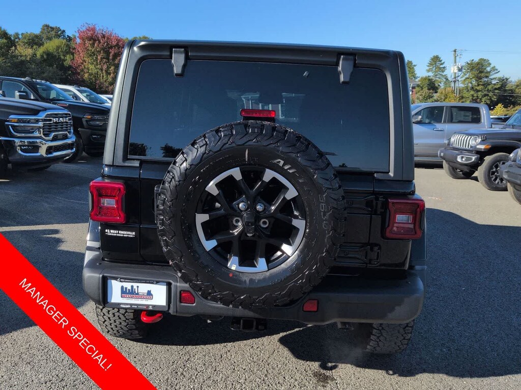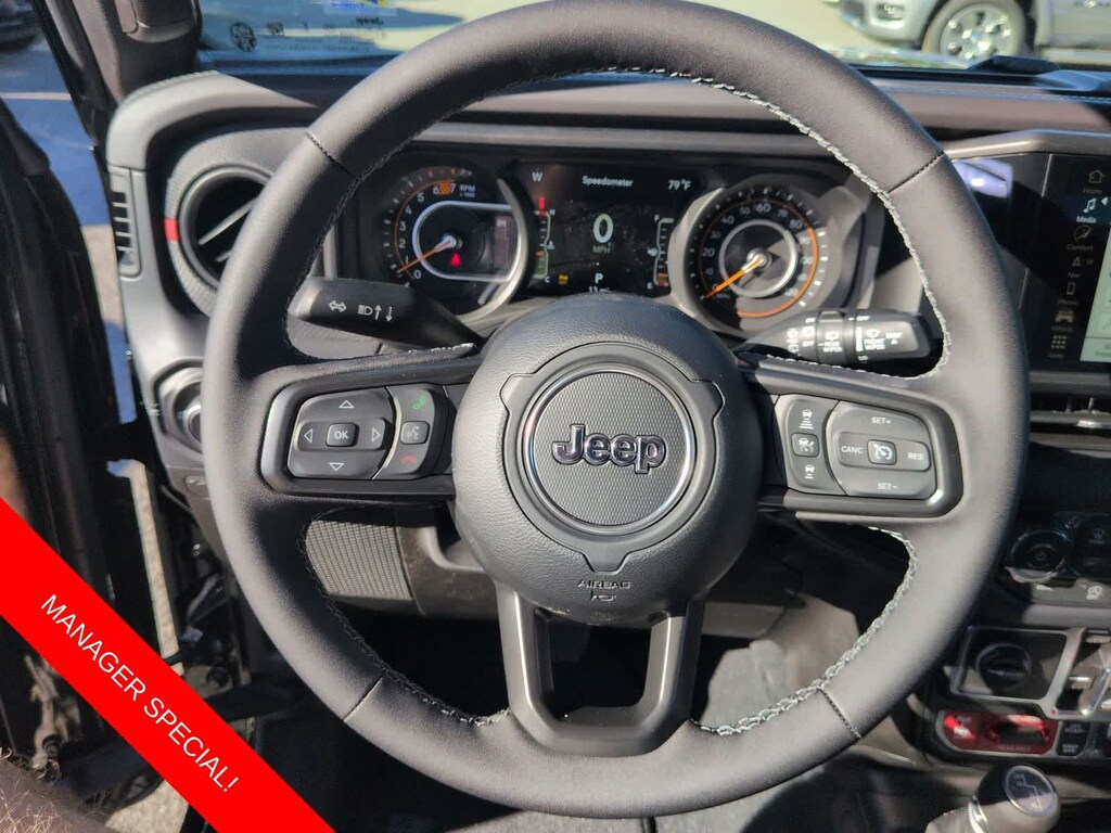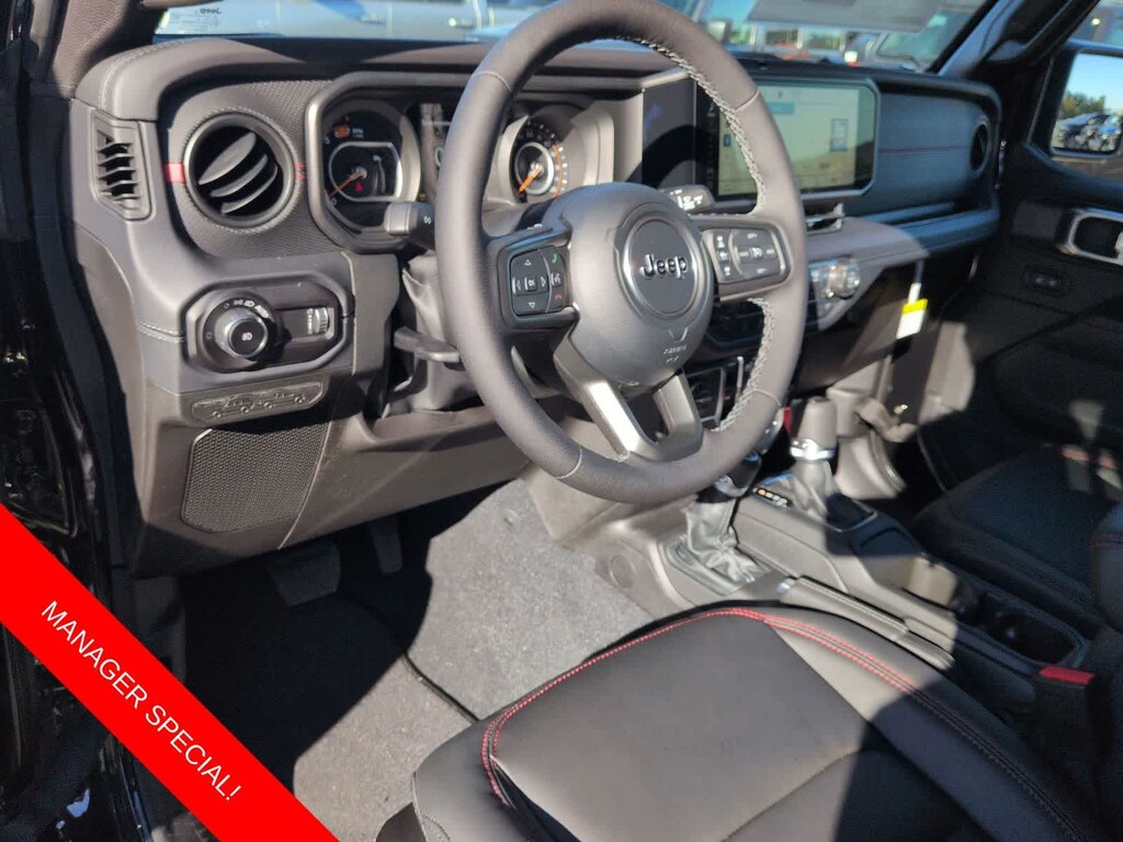 Wrangler Rubicon is nicely equipped with Convenience Group (Heated Front Seats, Heated Steering Wheel, and Universal Garage Door Opener), Quick Order Package 24R Rubicon, Steel Bumper Group (Steel Front Bumper and Steel Rear Bumper), Technology Group (12.3 Touchscreen Display, 4G LTE Wi-Fi Hot Spot, Apple CarPlay, Auto-Dimming Rear-View Mirror, Connected Travel and Traffic Services, Connectivity - US/Canada, For More Info, Call 800-643-2112, Google Android Auto, GPS Navigation, HD Radio, Integrated Center Stack Radio, Integrated Off-Road Camera, Integrated Voice Command with Bluetooth, Radio: Uconnect 5 Navigation with 12.3 Display, SiriusXM Radio Service, and SiriusXM with 360L), 4-Wheel Disc Brakes, 4.10 Rear Axle Ratio, 8 Speakers, ABS brakes, Air Conditioning, Alloy wheels, Alpine Premium Audio System, AM/FM radio: SiriusXM with 360L, Apple CarPlay/Android Auto, Automatic temperature control, Aux Battery, Auxiliary Switches, Black 3-Piece Hard Top, Body Color Rubicon Highline Flare, Brake assist, Class II Receiver Hitch, Cloth Low-Back Bucket Seats, Compass, Delay-off headlights, Driver door bin, Driver vanity mirror, Dual front impact airbags, Dual front side impact airbags, Electronic Stability Control, Emergency communication system: Jeep Connect, Freedom Panel Storage Bag, Front anti-roll bar, Front Bucket Seats, Front Center Armrest w/Storage, Front dual zone A/C, Front fog lights, Front reading lights, Fully automatic headlights, Heated door mirrors, Illuminated entry, Integrated roll-over protection, Low tire pressure warning, No Soft Top, Non-Lock Fuel Cap Without Discriminator, Occupant sensing airbag, Outside temperature display, Overhead airbag, Panic alarm, ParkView Rear Back-Up Camera, Passenger door bin, Passenger vanity mirror, Performance Suspension, Power door mirrors, Power steering, Power windows, Radio data system, Radio: Uconnect 5 with 12.3 Display, Rear anti-roll bar, Rear reading lights, Rear Window Defroster, Rear Window Wiper/Washer, Remote keyless entry, Security system, Speed control, Split folding rear seat, Steering wheel mounted audio controls, Stop-Start Dual Battery System, Tachometer, Telescoping steering wheel, Tilt steering wheel, Traction control, Trip computer, Variably intermittent wipers, Voltmeter, Wheels: 17 x 7.5 Machined with Black Pockets, and Wheels: 17 x 7.5 Machined/Painted Black.