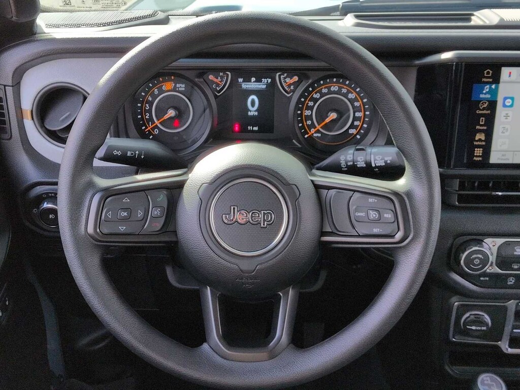 This Jeep comes with:Quick Order Package 24B Sport, 12.3 Touchscreen Display, 3.45 Overall Top Gear Ratio, 4-Wheel Disc Brakes, 4G LTE Wi-Fi Hot Spot, 8 Speakers, ABS brakes, Air Conditioning, AM/FM radio: SiriusXM with 360L, Apple CarPlay, Apple CarPlay/Android Auto, Aux Battery, Black 3-Piece Hard Top, Brake assist, Compass, Connectivity - US/Canada, Delay-off headlights, Driver door bin, Driver vanity mirror, Dual front impact airbags, Dual front side impact airbags, Electronic Stability Control, For More Info, Call 800-643-2112, Freedom Panel Storage Bag, Front anti-roll bar, Front Bucket Seats, Front Center Armrest w/Storage, Front fog lights, Front reading lights, Google Android Auto, Illuminated entry, Integrated Center Stack Radio, Integrated roll-over protection, Jeep Trail Rated Kit, Low tire pressure warning, Manufacture Statement of Origin, MOPAR All-Weather Floor Mats, No Soft Top, Non-Lock Fuel Cap Without Discriminator, Normal Duty Suspension, Occupant sensing airbag, Outside temperature display, Overhead airbag, Panic alarm, ParkView Rear Back-Up Camera, Passenger door bin, Passenger vanity mirror, Power steering, Power windows, Radio data system, Radio: Uconnect 5 with 12.3 Display, Rear anti-roll bar, Rear reading lights, Rear Window Defroster, Rear Window Wiper/Washer, Remote keyless entry, SiriusXM Radio Service, SiriusXM with 360L, Speed control, Split folding rear seat, Steering wheel mounted audio controls, Stop-Start Dual Battery System, Tachometer, Telescoping steering wheel, Tilt steering wheel, Traction control, Trip computer, Variably intermittent wipers, and Wheels: 17 x 7.5 Black Steel Styled. Prices do not include Protection Package + includes Vehicle Tint at $599, Door Edge Guards at $399, Wheel Locks at $199, PermaPlate at $700, LoJack at $1,199 and Etch at $899. Price does not include $699 Dealer Documentation Fee, taxes, and license fee.