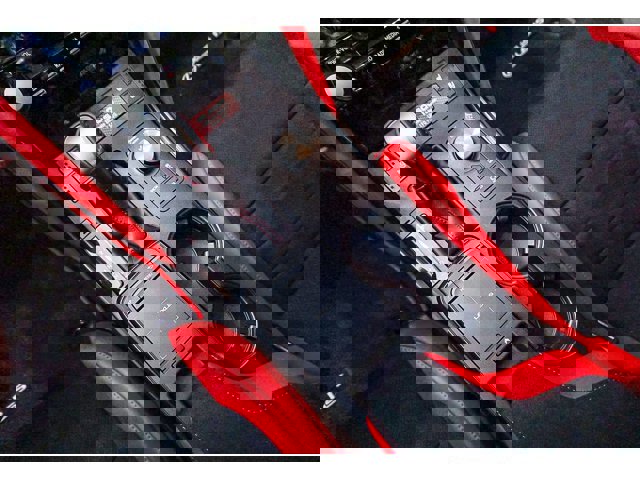 - Black Ultrasuede® - Circuit Red Nuluxe® and Satin