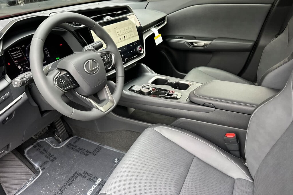 Navigation, Power Liftgate, Heated Driver Seat, Cooled Driver Seat, Back-Up Camera. Lexus RZ 350e with CAVIAR exterior and LT. GRAY interior features a Electric Motor.