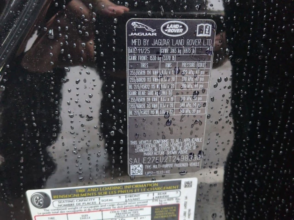 Recent Arrival! X-Dynamic SE AWD 3.0L I6 Defender Handover Pack, 22 Full Size Spare Wheel, 12-Way Heated and Cooled Electric Memory Front Seats, 14-Way Heated and Cooled Electric Memory Front Seats, 40:20:40 Folding Heated Rear Seats with Center Armrest, Advanced Tow Assist, All Terrain Progress Control (ATPC), Apple CarPlay & Android Auto, Auto High-beam Headlights, Auto tilt-away steering wheel, Auto-dimming door mirrors, Auto-dimming Rear-View mirror, Automatic temperature control, Black Contrast Signature Graphic with Interior Storage, Black Wheel Protection Pack, Bumpers: body-color, ClearSight Interior Rear View Mirror, Cold Climate Package, Configurable Terrain Response, Dark Grey Powder Coat Cross Car Beam, Delay-off headlights, Emergency Pack, Extended Leather Upgrade, Four wheel independent suspension, Front Bucket Seats, Front dual zone A/C, Fully automatic headlights, Garage door transmitter: HomeLink, Head-Up Display, Headlight Power Wash, Heated door mirrors, Heated front seats, Heated steering wheel, Heated Windscreen, Illuminated entry, Leather Gearshift, Leather Steering Wheel, Memory seat, Navigation system: Connected Navigation PIVI Pro, Panic alarm, Premium Upgrade Interior Pack, Rear reading lights, Rear Seat Convenience Pack, Remote keyless entry, Security system, Speed-sensing steering, Steering wheel memory, Steering wheel mounted audio controls, Telescoping steering wheel, Terrain Response 2, Tilt steering wheel, Tow Hitch Receiver, Towing Pack, Traction control, Ventilated front seats, Wheel Protection Pack, Wheels: 22 Gloss Black Style 5098.