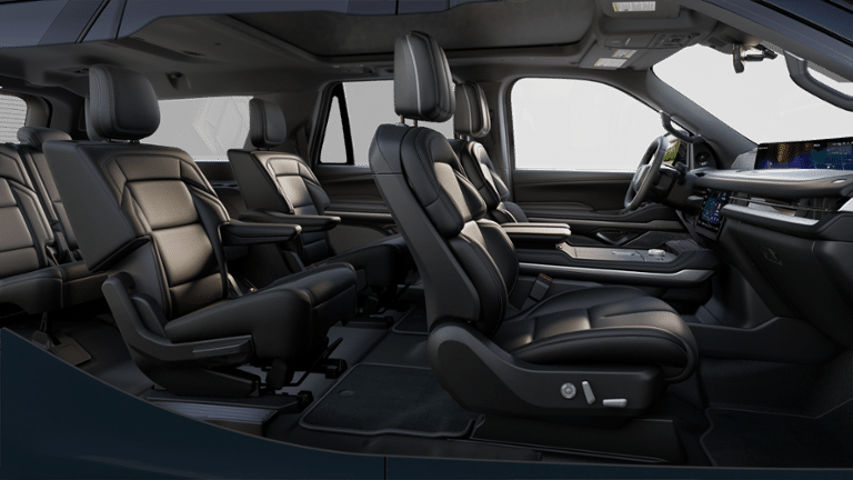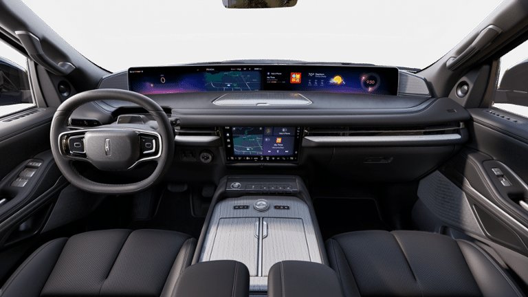 JET APPEARANCE PACKAGE Wheels: 22 High-Gloss Ebony Aluminum, Black Painted Roof Rails, Black Accent Badge, Lincoln Lit Star, Front Bumper Fascia, Unique Lincoln Grille Pillar Black Surround, black mesh insert, Black Beltline Molding, Black Accent Interior Pack, TRANSMISSION: 10-SPEED AUTOMATIC SelectShift capability (STD). 2025 Lincoln Navigator L with Flight Blue Metallic Clearcoat exterior and Black Onyx interior features a V6 Cylinder Engine with 440 HP at 5400 RPM*. Approx. Original Base Sticker Price: $110,600*.
