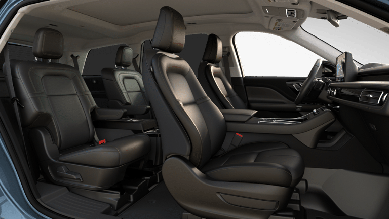JET APPEARANCE PACKAGE 275/40R22 107 W-Rated Tires, 22 Black Aluminum Wheels, adaptive suspension, Adaptive suspension includes noise reduction module and sound insulation pack, Black Exterior Elements, grille insert, plinth and surround, fender/door badging, front/rear door spears, glass surrounds and roof rails, Body-Color Exterior Elements, lower front and rear fascia, door cladding and wheel lips, ILLUMINATION PACKAGE Lincoln Dynamic Signature Lighting, LED daytime running lamps (sequential fade on/off), Illuminated Lincoln Star in Grille, Speed Dependent Lighting, Adaptive Pixel LED Headlamps, Adaptive Dynamic Bending Lighting, EQUIPMENT GROUP 200A RESERVE I Advanced Heads-Up Display, Auto Air Refresh, 10-SPEED AUTOMATIC TRANSMISSION W/SELECTSHIFT CAPABILITY (STD). 2026 Lincoln Aviator with Whisper Blue Metallic Clearcoat exterior and Onyx interior features a V6 Cylinder Engine with 400 HP at 5500 RPM*.