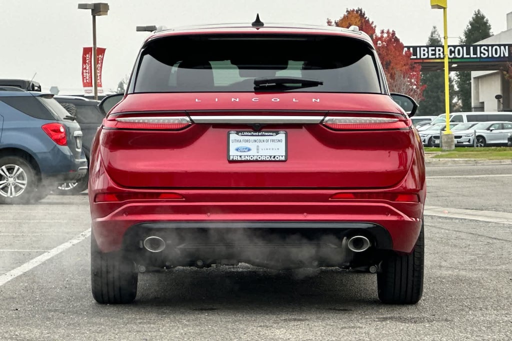 Lithia Ford and Lincoln of Fresno is pleased to offer this Red Carpet Metallic Tinted Clearcoat 2026 Lincoln Corsair Plug-In Hybrid Grand Touring for purchase, this vehicle is well equipped with many features including: 2.5L i-VCT, 19 Bright Machined Aluminum Wheels, 4-Wheel Disc Brakes, 9 Speakers, ABS brakes, Adaptive suspension, Air Conditioning, Alexa Built-In, Alloy wheels, AM/FM radio: SiriusXM with 360L, Apple CarPlay/Android Auto, Auto High-beam Headlights, Auto-dimming Rear-View mirror, Automatic temperature control, Brake assist, Bumpers: body-color, Compass, Delay-off headlights, Driver door bin, Driver vanity mirror, Dual front impact airbags, Dual front side impact airbags, Electronic Stability Control, Emergency communication system: 911 Assist, Exterior Parking Camera Rear, Four wheel independent suspension, Front anti-roll bar, Front Bucket Seats, Front Center Armrest, Front dual zone A/C, Front reading lights, Fully automatic headlights, Heated door mirrors, Heated front seats, Illuminated entry, Knee airbag, Leather steering wheel, Low tire pressure warning, Memory seat, Navigation system: Connected Navigation (4-year trial), Occupant sensing airbag, Outside temperature display, Overhead airbag, Overhead console, Panic alarm, Passenger door bin, Passenger vanity mirror, Power door mirrors, Power driver seat, Power Liftgate, Power moonroof: Panoramic Vista Roof, Power passenger seat, Power steering, Power windows, Premium Leather-Trimmed Heated Captains Chairs, Radio data system, Radio: Lincoln Premium Audio System w/MP3, Rear anti-roll bar, Rear Parking Sensors, Rear reading lights, Rear seat center armrest, Rear window defroster, Rear window wiper, Remote keyless entry, Security system, SiriusXM w/360L Radio, Speed control, Speed-sensing steering, Speed-Sensitive Wipers, Split folding rear seat, Spoiler, Steering wheel mounted A/C controls, Steering wheel mounted audio controls, SYNC 4 Communications & Entertainment System, Tachometer, Telescoping steering wheel, Tilt steering wheel, Traction control, Trip computer, and Variably intermittent wipers. AWD eCVT 2.5L i-VCT Grand Touring 2.5L i-VCT.