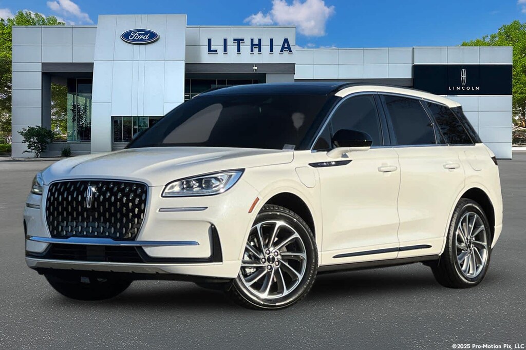Lithia Ford and Lincoln of Fresno is pleased to offer this Pristine White Metallic Tri-Coat 2026 Lincoln Corsair Plug-In Hybrid Grand Touring for purchase, this vehicle is well equipped with many features including: 2.5L i-VCT, 19 Bright Machined Aluminum Wheels, 4-Wheel Disc Brakes, 9 Speakers, ABS brakes, Adaptive suspension, Air Conditioning, Alexa Built-In, Alloy wheels, AM/FM radio: SiriusXM with 360L, Apple CarPlay/Android Auto, Auto High-beam Headlights, Auto-dimming Rear-View mirror, Automatic temperature control, Brake assist, Bumpers: body-color, Compass, Delay-off headlights, Driver door bin, Driver vanity mirror, Dual front impact airbags, Dual front side impact airbags, Electronic Stability Control, Emergency communication system: 911 Assist, Exterior Parking Camera Rear, Four wheel independent suspension, Front anti-roll bar, Front Bucket Seats, Front Center Armrest, Front dual zone A/C, Front reading lights, Fully automatic headlights, Heated door mirrors, Heated front seats, Illuminated entry, Knee airbag, Leather steering wheel, Low tire pressure warning, Memory seat, Navigation system: Connected Navigation (4-year trial), Occupant sensing airbag, Outside temperature display, Overhead airbag, Overhead console, Panic alarm, Passenger door bin, Passenger vanity mirror, Power door mirrors, Power driver seat, Power Liftgate, Power moonroof: Panoramic Vista Roof, Power passenger seat, Power steering, Power windows, Premium Leather-Trimmed Heated Captains Chairs, Radio data system, Radio: Lincoln Premium Audio System w/MP3, Rear anti-roll bar, Rear Parking Sensors, Rear reading lights, Rear seat center armrest, Rear window defroster, Rear window wiper, Remote keyless entry, Security system, SiriusXM w/360L Radio, Speed control, Speed-sensing steering, Speed-Sensitive Wipers, Split folding rear seat, Spoiler, Steering wheel mounted A/C controls, Steering wheel mounted audio controls, SYNC 4 Communications & Entertainment System, Tachometer, Telescoping steering wheel, Tilt steering wheel, Traction control, Trip computer, and Variably intermittent wipers. AWD eCVT 2.5L i-VCT Grand Touring 2.5L i-VCT.
