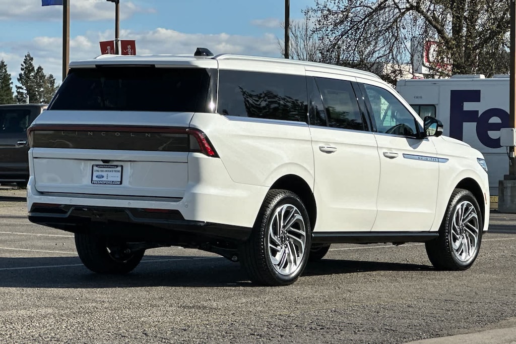 Lithia Ford and Lincoln of Fresno is pleased to offer this Star White Metallic Tri-Coat 2026 Lincoln Navigator L Reserve for purchase, this vehicle is well equipped with many features including: Lincoln Connectivity Package (4-Years Included), Lincoln Security Package, 28 Speakers, 3rd row seats: split-bench, 4-Wheel Disc Brakes, ABS brakes, Adaptive suspension, Air Conditioning, Alloy wheels, AM/FM radio: SiriusXM with 360L, Apple CarPlay/Android Auto, Audio memory, Auto Heated/Ventilated Premium Leather Captains Chairs, Auto High-beam Headlights, Auto Start-Stop Technology, Auto tilt-away steering wheel, Auto-dimming door mirrors, Auto-dimming Rear-View mirror, Auto-leveling suspension, Automatic temperature control, BlueCruise Equipped (4-Years Included), Brake assist, Bumpers: body-color, Compass, Delay-off headlights, Driver door bin, Driver vanity mirror, Drivers Seat Mounted Armrest, Dual front impact airbags, Dual front side impact airbags, Electronic Stability Control, Emergency communication system: 911 Assist, Exterior Parking Camera Rear, Four wheel independent suspension, Front anti-roll bar, Front Bucket Seats, Front dual zone A/C, Front reading lights, Fully automatic headlights, Garage door transmitter, Heated door mirrors, Heated front seats, Heated rear seats, Heated steering wheel, HVAC memory, Illuminated entry, Leather steering wheel, Lincoln App, Lincoln Digital Experience, Low tire pressure warning, Memory seat, Navigation system: Connected Navigation (1-year trial), Occupant sensing airbag, Outside temperature display, Overhead airbag, Overhead console, Panic alarm, Passenger door bin, Passenger seat mounted armrest, Passenger vanity mirror, Power adjustable rear head restraints, Power door mirrors, Power driver seat, Power moonroof: Panoramic Vista Roof, Power passenger seat, Power steering, Power windows, Radio data system, Radio: Revel Ultima 3D Audio System, Rain sensing wipers, Rear air conditioning, Rear anti-roll bar, Rear audio controls, Rear reading lights, Rear window defroster, Rear window wiper, Reclining 3rd row seat, Remote keyless entry, Security system, SiriusXM with 360L (3 Months Trial), Speed control, Speed-sensing steering, Speed-Sensitive Wipers, Split folding rear seat, Spoiler, Steering wheel memory, Steering wheel mounted audio controls, Tachometer, Telescoping steering wheel, Tilt steering wheel, Traction control, Trip computer, Turn signal indicator mirrors, Variably intermittent wipers, Ventilated front seats, and Wheels: 22 Dark Tarnished Aluminum. 4WD 10-Speed Automatic 3.5L V6 Reserve