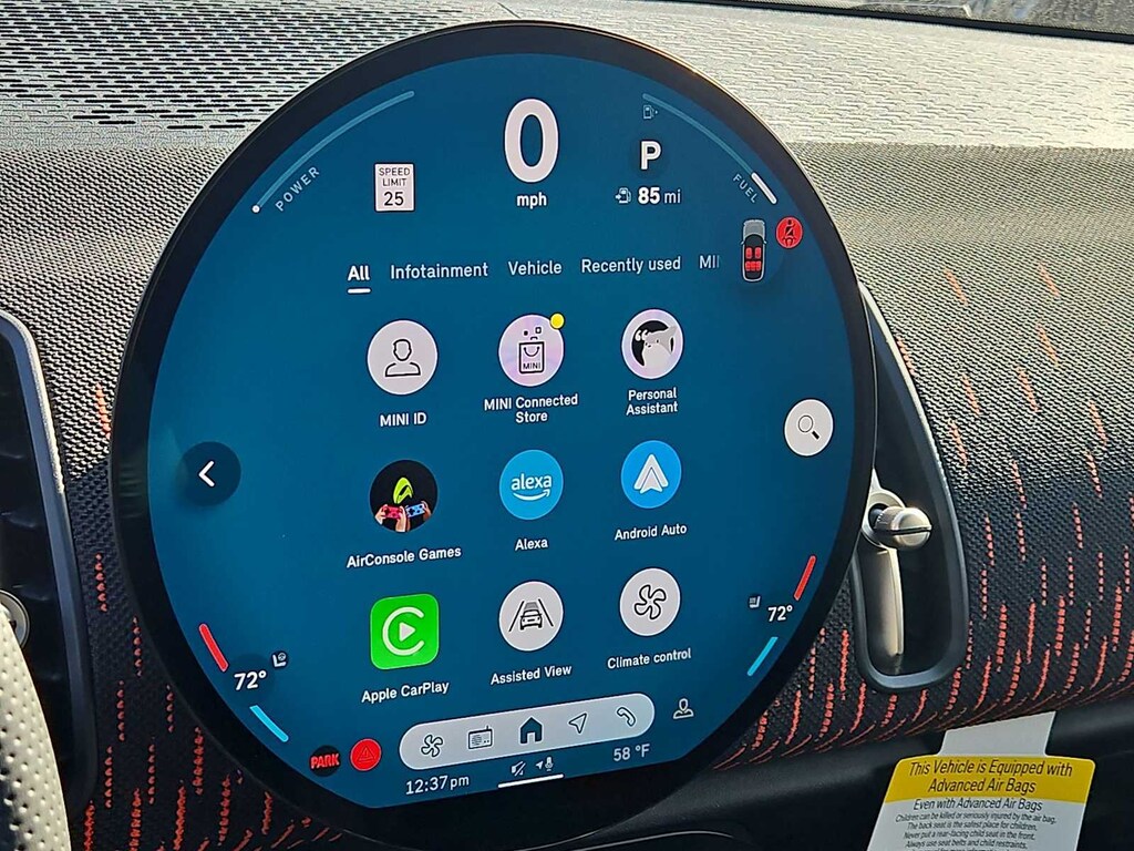 Comfort Package Max (Active Driving Assistant Pro, Auto-Dimming Interior & Exterior Mirrors, Auto-Dimming Rear-View Mirror, Comfort Access Keyless Entry, MINI Navigation AR, Parking Assistant Plus, and Wireless Device Charging), Comfort Package Plus, Iconic Trim (Active Driver Seat w/Lumbar Support, Interior Camera, Power Front Seats, and Privacy Glass), 12 Speakers, 4-Wheel Disc Brakes, ABS brakes, Adaptive suspension, Advanced Real-Time Traffic Information, Air Conditioning, Alloy wheels, AM/FM Radio, AM/FM radio: SiriusXM w/360L, Apple CarPlay Compatibility, Auto High-beam Headlights, Auto-dimming door mirrors, Auto-dimming Rear-View mirror, Automatic temperature control, Brake assist, Bumpers: body-color, Delay-off headlights, Driver door bin, Driver vanity mirror, Dual front impact airbags, Dual front side impact airbags, Dynamic Damper Control, Electronic Stability Control, Emergency communication system: MINI Assist eCall, Exterior Parking Camera Rear, Four wheel independent suspension, Front anti-roll bar, Front Bucket Seats, Front Center Armrest, Front dual zone A/C, Front reading lights, Fully automatic headlights, harman/kardon Surround Sound System, harman/kardonî Speakers, Heads-Up Display, Heated Front Seats, Heated front seats, Heated steering wheel, Illuminated entry, John Cooper Works Sport Seats, Knee airbag, Low tire pressure warning, MINI Assist eCall, MINI Connected, MINI Navigation, MINI TeleServices, Navigation System, Occupant sensing airbag, Outside temperature display, Overhead airbag, Overhead console, Panic alarm, Passenger door bin, Passenger vanity mirror, Power door mirrors, Power Liftgate, Power moonroof, Power steering, Power windows, Radio data system, Rear anti-roll bar, Rear seat center armrest, Rear window defroster, Rear window wiper, Remote keyless entry, Security system, Sirius XM w/360L, Speed control, Speed-sensing steering, Speed-Sensitive Wipers, Split folding rear seat, Spoiler, Sport steering wheel, Steering wheel mounted audio controls, Tachometer, Telescoping steering wheel, Tilt steering wheel, Traction control, Trip computer, Variably intermittent wipers, Vescin/Cord Upholstery, and Wheels:19 x 8.0 John Cooper Works Runway Spoke Blk.
