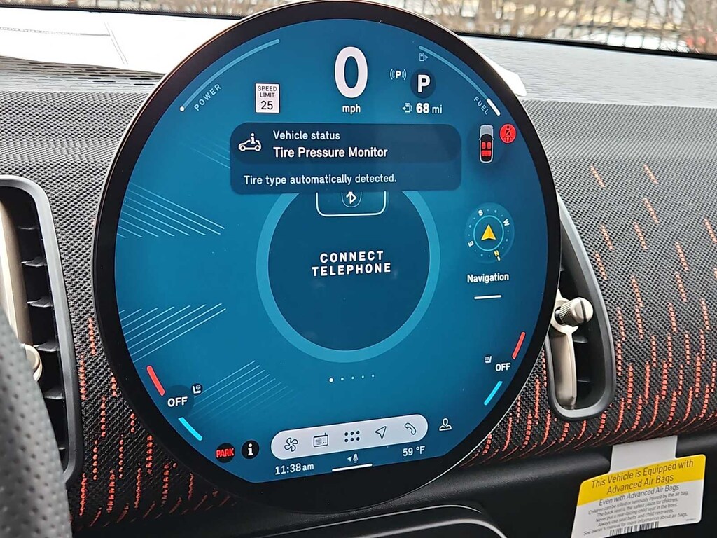 Comfort Package Plus (Auto-Dimming Interior & Exterior Mirrors, Auto-Dimming Rear-View Mirror, Comfort Access Keyless Entry, MINI Navigation AR, Parking Assistant Plus, and Wireless Device Charging), Iconic Trim (Active Driver Seat w/Lumbar Support, Interior Camera, Power Front Seats, and Privacy Glass), 12 Speakers, 4-Wheel Disc Brakes, ABS brakes, Adaptive suspension, Advanced Real-Time Traffic Information, Air Conditioning, Alloy wheels, AM/FM Radio, AM/FM radio: SiriusXM w/360L, Apple CarPlay Compatibility, Auto High-beam Headlights, Auto-dimming door mirrors, Auto-dimming Rear-View mirror, Automatic temperature control, Black Sport Stripes, Brake assist, Bumpers: body-color, Delay-off headlights, Driver door bin, Driver vanity mirror, Dual front impact airbags, Dual front side impact airbags, Dynamic Damper Control, Electronic Stability Control, Emergency communication system: MINI Assist eCall, Exterior Parking Camera Rear, Four wheel independent suspension, Front anti-roll bar, Front Bucket Seats, Front Center Armrest, Front dual zone A/C, Front reading lights, Fully automatic headlights, harman/kardon Surround Sound System, harman/kardonî Speakers, Heads-Up Display, Heated Front Seats, Heated front seats, Heated steering wheel, Illuminated entry, John Cooper Works Sport Seats, Knee airbag, Low tire pressure warning, MINI Assist eCall, MINI Connected, MINI Navigation, MINI TeleServices, Navigation System, Occupant sensing airbag, Outside temperature display, Overhead airbag, Overhead console, Panic alarm, Passenger door bin, Passenger vanity mirror, Power door mirrors, Power Liftgate, Power moonroof, Power steering, Power windows, Radio data system, Rear anti-roll bar, Rear seat center armrest, Rear window defroster, Rear window wiper, Remote keyless entry, Security system, Sirius XM w/360L, Speed control, Speed-sensing steering, Speed-Sensitive Wipers, Split folding rear seat, Spoiler, Sport steering wheel, Steering wheel mounted audio controls, Tachometer, Telescoping steering wheel, Tilt steering wheel, Traction control, Trip computer, Variably intermittent wipers, Vescin/Cord Upholstery, and Wheels:19 x 8.0 John Cooper Works Runway Spoke Blk.