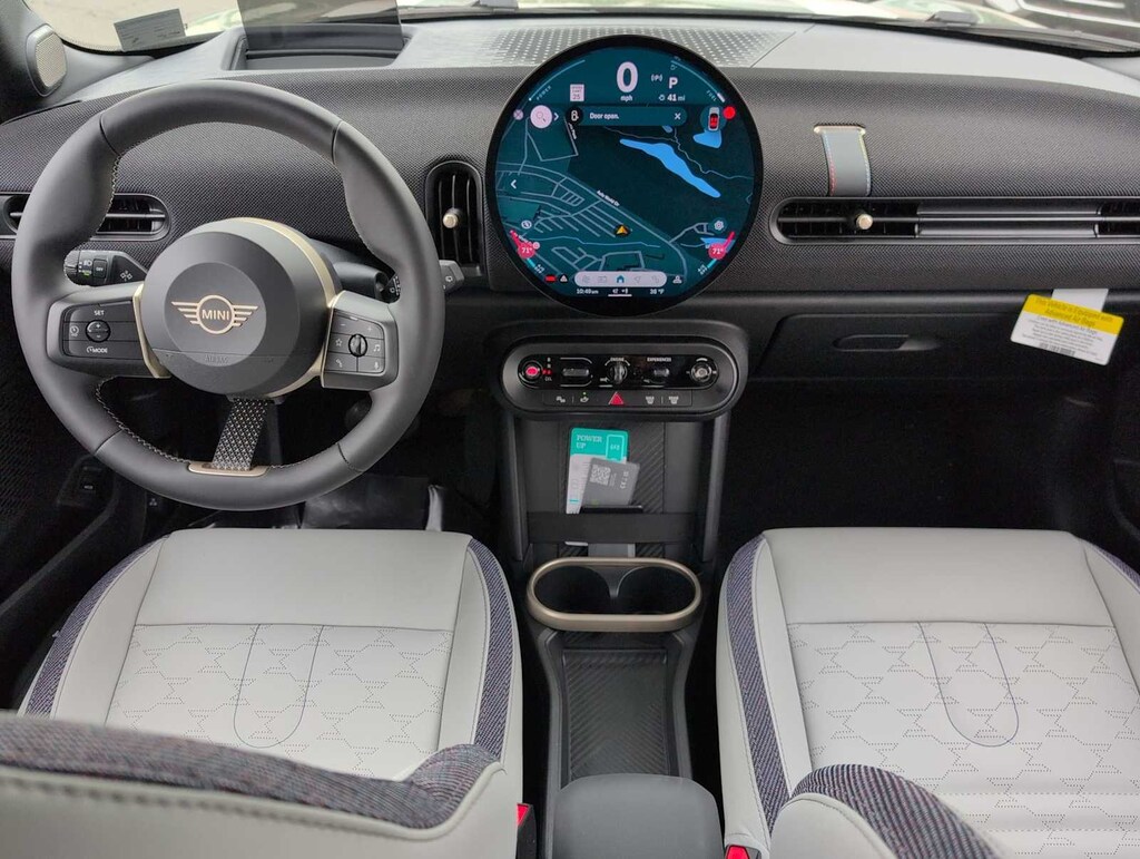 Classic Style (Classic Trim Specific Additional Content and Sports Steering Wheel), Comfort Package Plus (Auto-Dimming Interior & Exterior Mirrors, Auto-Dimming Rear-View Mirror, Comfort Access Keyless Entry, MINI Navigation AR, Parking Assistant Plus, and Wireless Device Charging), Iconic Trim (ACC Stop & Go + Active Driving Assistant, Active Driving Assistant, Alarm System, harman/kardon Surround Sound System, Interior Camera, and Remote Engine Start), 4-Wheel Disc Brakes, 6 Speakers, ABS brakes, Advanced Real-Time Traffic Information, Air Conditioning, Alloy wheels, AM/FM radio: SiriusXM, AM/FM Stereo, Apple CarPlay Compatibility, Auto High-beam Headlights, Auto-dimming door mirrors, Auto-dimming Rear-View mirror, Automatic temperature control, Body Color Roof, Brake assist, Bumpers: body-color, Delay-off headlights, Driver door bin, Driver vanity mirror, Dual front impact airbags, Dual front side impact airbags, Electronic Stability Control, Emergency communication system, Exterior Parking Camera Rear, Four wheel independent suspension, Front anti-roll bar, Front Bucket Seats, Front Center Armrest w/Storage, Front dual zone A/C, Front reading lights, Fully automatic headlights, Headliner in Anthracite, Headliner In Grey, Heads-Up Display, Heated door mirrors, Heated Front Seats, Heated front seats, Heated steering wheel, Illuminated entry, Knee airbag, Leather steering wheel, Low tire pressure warning, MINI Assist eCall, MINI Connected, MINI Head-Up Display, MINI Interaction Unit, MINI Navigation, MINI TeleServices, Navigation System, Occupant sensing airbag, Outside temperature display, Overhead airbag, Overhead console, Panic alarm, Passenger door bin, Passenger vanity mirror, Personal eSIM 5G, Power door mirrors, Power moonroof, Power steering, Power windows, Radio data system, Rain sensing wipers, Rear anti-roll bar, Rear window defroster, Rear window wiper, Remote keyless entry, Security system, SiriusXM w/360L & 1 Year Trial Subscription, Speed control, Speed-sensing steering, Speed-Sensitive Wipers, Split folding rear seat, Spoiler, Sport Seats, Sport steering wheel, Steering wheel mounted audio controls, Tachometer, Telescoping steering wheel, Tilt steering wheel, Traction control, Trip computer, Variably intermittent wipers, Vescin/Cloth Upholstery, Wheels: 17 x 7 Parallel Spoke 2-Tone (ZPQ), Wheels: 17 x 7 U-Spoke Grey, Wheels: 18 x 7 Slide Spoke Two-Tone, and White Roof & Mirror Caps.