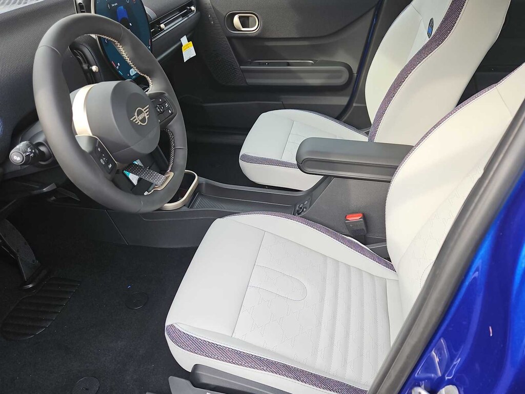 Classic Style (Classic Trim Specific Additional Content, Headliner In Grey, and Sports Steering Wheel), Comfort Package Plus (Auto-Dimming Interior & Exterior Mirrors, Auto-Dimming Rear-View Mirror, Comfort Access Keyless Entry, MINI Navigation AR, Parking Assistant Plus, and Wireless Device Charging), Iconic Trim (ACC Stop & Go + Active Driving Assistant, Active Driving Assistant, Alarm System, harman/kardon Surround Sound System, Interior Camera, and Remote Engine Start), 4-Wheel Disc Brakes, 6 Speakers, ABS brakes, Advanced Real-Time Traffic Information, Air Conditioning, Alloy wheels, AM/FM radio: SiriusXM, AM/FM Stereo, Apple CarPlay Compatibility, Auto High-beam Headlights, Auto-dimming door mirrors, Auto-dimming Rear-View mirror, Automatic temperature control, Body Color Roof, Brake assist, Bumpers: body-color, Delay-off headlights, Driver door bin, Driver vanity mirror, Dual front impact airbags, Dual front side impact airbags, Electronic Stability Control, Emergency communication system: MINI Assist eCall, Exterior Parking Camera Rear, Four wheel independent suspension, Front anti-roll bar, Front Bucket Seats, Front Center Armrest w/Storage, Front dual zone A/C, Front reading lights, Fully automatic headlights, Headliner in Anthracite, Heads-Up Display, Heated door mirrors, Heated Front Seats, Heated front seats, Heated steering wheel, Illuminated entry, Knee airbag, Leather steering wheel, Low tire pressure warning, MINI Assist eCall, MINI Connected, MINI Head-Up Display, MINI Interaction Unit, MINI Navigation, MINI TeleServices, Navigation System, Occupant sensing airbag, Outside temperature display, Overhead airbag, Overhead console, Panic alarm, Passenger door bin, Passenger vanity mirror, Personal eSIM 5G, Power door mirrors, Power moonroof, Power steering, Power windows, Radio data system, Rain sensing wipers, Rear anti-roll bar, Rear window defroster, Rear window wiper, Remote keyless entry, Security system, SiriusXM w/360L & 1 Year Trial Subscription, Speed control, Speed-sensing steering, Speed-Sensitive Wipers, Split folding rear seat, Spoiler, Sport Seats, Sport steering wheel, Steering wheel mounted audio controls, Tachometer, Telescoping steering wheel, Tilt steering wheel, Traction control, Trip computer, Variably intermittent wipers, Vescin/Cloth Upholstery, Wheels: 17 x 7 Parallel Spoke 2-Tone (ZPQ), Wheels: 17 x 7 U-Spoke Grey, Wheels: 17 x 7 U-Spoke Vibrant Silver (1KF), and White Roof & Mirror Caps.