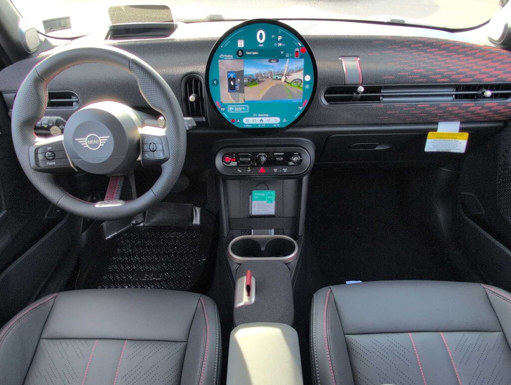 Comfort Package Plus (Auto-Dimming Interior & Exterior Mirrors, Auto-Dimming Rear-View Mirror, Comfort Access Keyless Entry, MINI Navigation AR, Parking Assistant Plus, and Wireless Device Charging), Iconic Trim (ACC Stop & Go + Active Driving Assistant, Active Driving Assistant, Alarm System, harman/kardon Surround Sound System, Interior Camera, and Remote Engine Start), John Cooper Works Style (Body Color Roof, Dynamic Damper Control, Headliner in Anthracite, JCW Trim Specific Additional Contents, John Cooper Works Sport Brake, John Cooper Works Sport Seats, John Cooper Works Steering Wheel, Vescin/Cord Upholstery, and Wheels: 17 x 7 JCW Sprint Spoke Black), 4-Wheel Disc Brakes, 6 Speakers, ABS brakes, Active Driver Seat w/Lumbar Support, Advanced Real-Time Traffic Information, Air Conditioning, Alloy wheels, AM/FM radio: SiriusXM, AM/FM Stereo, Apple CarPlay Compatibility, Auto High-beam Headlights, Auto-dimming door mirrors, Auto-dimming Rear-View mirror, Automatic temperature control, Black Roof & Mirror Caps, Black Sport Stripes, Brake assist, Bumpers: body-color, Delay-off headlights, Driver door bin, Driver vanity mirror, Dual front impact airbags, Dual front side impact airbags, Electronic Stability Control, Emergency communication system: MINI Assist eCall, Exterior Parking Camera Rear, Four wheel independent suspension, Front anti-roll bar, Front Bucket Seats, Front Center Armrest w/Storage, Front dual zone A/C, Front reading lights, Fully automatic headlights, Heads-Up Display, Heated door mirrors, Heated Front Seats, Heated front seats, Heated steering wheel, Illuminated entry, Knee airbag, Leather steering wheel, Low tire pressure warning, MINI Assist eCall, MINI Connected, MINI Head-Up Display, MINI Interaction Unit, MINI Navigation, MINI TeleServices, Navigation System, Occupant sensing airbag, Outside temperature display, Overhead airbag, Overhead console, Panic alarm, Passenger door bin, Passenger vanity mirror, Personal eSIM 5G, Power door mirrors, Power Front Seats, Power moonroof, Power steering, Power windows, Radio data system, Rain sensing wipers, Rear anti-roll bar, Rear window defroster, Rear window wiper, Remote keyless entry, Security system, SiriusXM w/360L & 1 Year Trial Subscription, Speed control, Speed-sensing steering, Speed-Sensitive Wipers, Split folding rear seat, Spoiler, Sport Seats, Sport steering wheel, Steering wheel mounted audio controls, Tachometer, Telescoping steering wheel, Tilt steering wheel, Traction control, Trip computer, Variably intermittent wipers, Vescin/Cloth Upholstery, Wheels: 17 x 7 Parallel Spoke 2-Tone (ZPQ), and Wheels: 17 x 7 U-Spoke Grey.