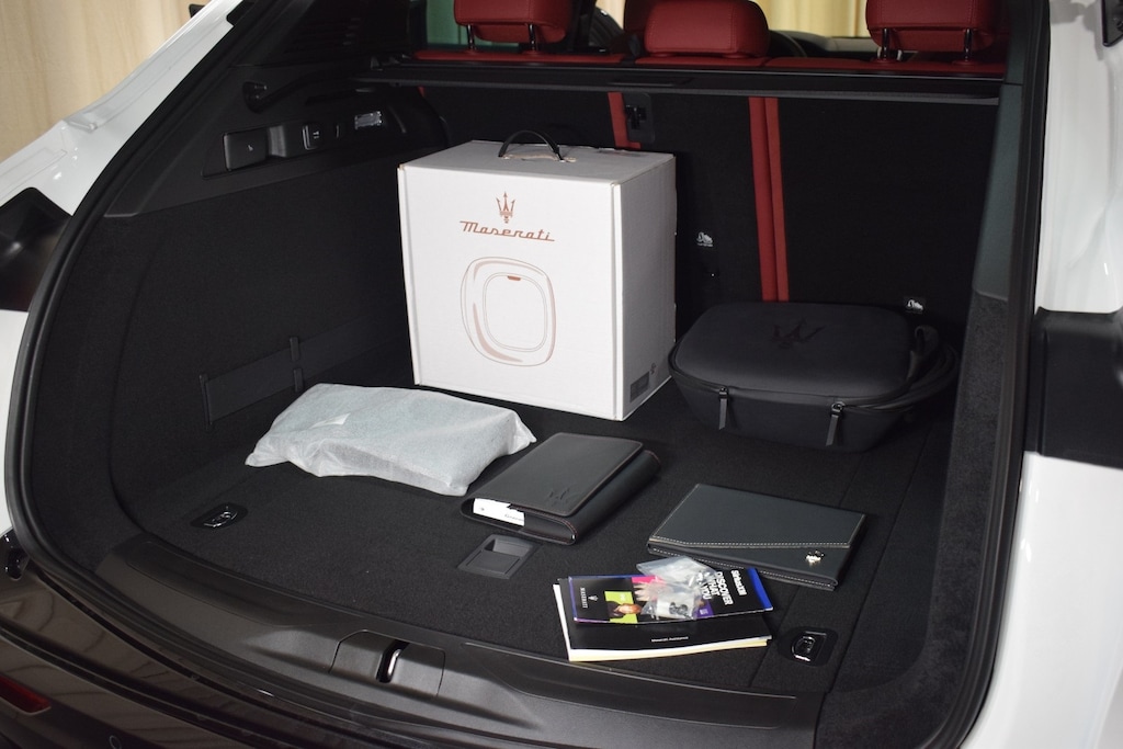 OPTIONAL EQUIPMENT INCLUDES: Driver Assistance Level 2 Pack / Climate Package / Tech Assistance Package / Sport Premium Dark Red Leather / H-P Sound System Bowers&Wilkins / Red Brake Calipers / Black Piano Wood Trim/ Grecale Accessories