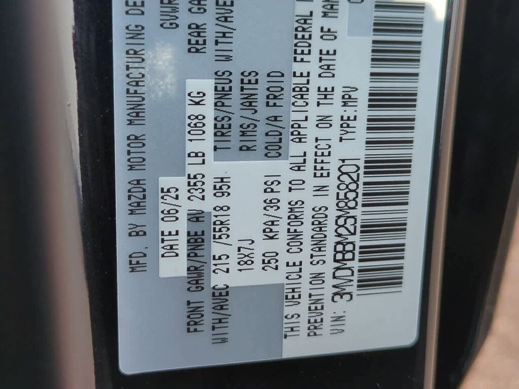4-Wheel Disc Brakes, 6 Speakers, ABS brakes, Air Conditioning, Alloy wheels, AM/FM radio, AppLink/Apple CarPlay and Android Auto, Auto High-beam Headlights, Automatic temperature control, Black Lug Nuts & Black Wheel Locks, Brake assist, Bumpers: body-color, Cargo Cover, Compass, Delay-off headlights, Driver door bin, Driver vanity mirror, Dual front impact airbags, Dual front side impact airbags, Electronic Stability Control, Emergency communication system: Mazda Connected Services (3-year trial subscription included), Exterior Parking Camera Rear, Front anti-roll bar, Front Bucket Seats, Front Center Armrest, Front dual zone A/C, Front reading lights, Front wheel independent suspension, Fully automatic headlights, Heated door mirrors, High Wall All-Weather Floor Mats, Illuminated entry, Knee airbag, Leather Shift Knob, Leather steering wheel, Leatherette Seat Trim, Low tire pressure warning, MAZDA CONNECT Infotainment System, Occupant sensing airbag, Outside temperature display, Overhead airbag, Overhead console, Panic alarm, Passenger door bin, Passenger vanity mirror, Power door mirrors, Power steering, Power windows, Radio data system, Radio: AM/FM Audio System, Rain sensing wipers, Rear seat center armrest, Rear side impact airbag, Rear window defroster, Rear window wiper, Remote keyless entry, Speed control, Speed-sensing steering, Split folding rear seat, Spoiler, Steering wheel mounted audio controls, Tachometer, Telescoping steering wheel, Tilt steering wheel, Traction control, Trip computer, Turn signal indicator mirrors, Variably intermittent wipers, and Wheels: 18 x 7J Aluminum Alloy. Price includes: $1000 - Customer Cash. Exp. 02/02/2026