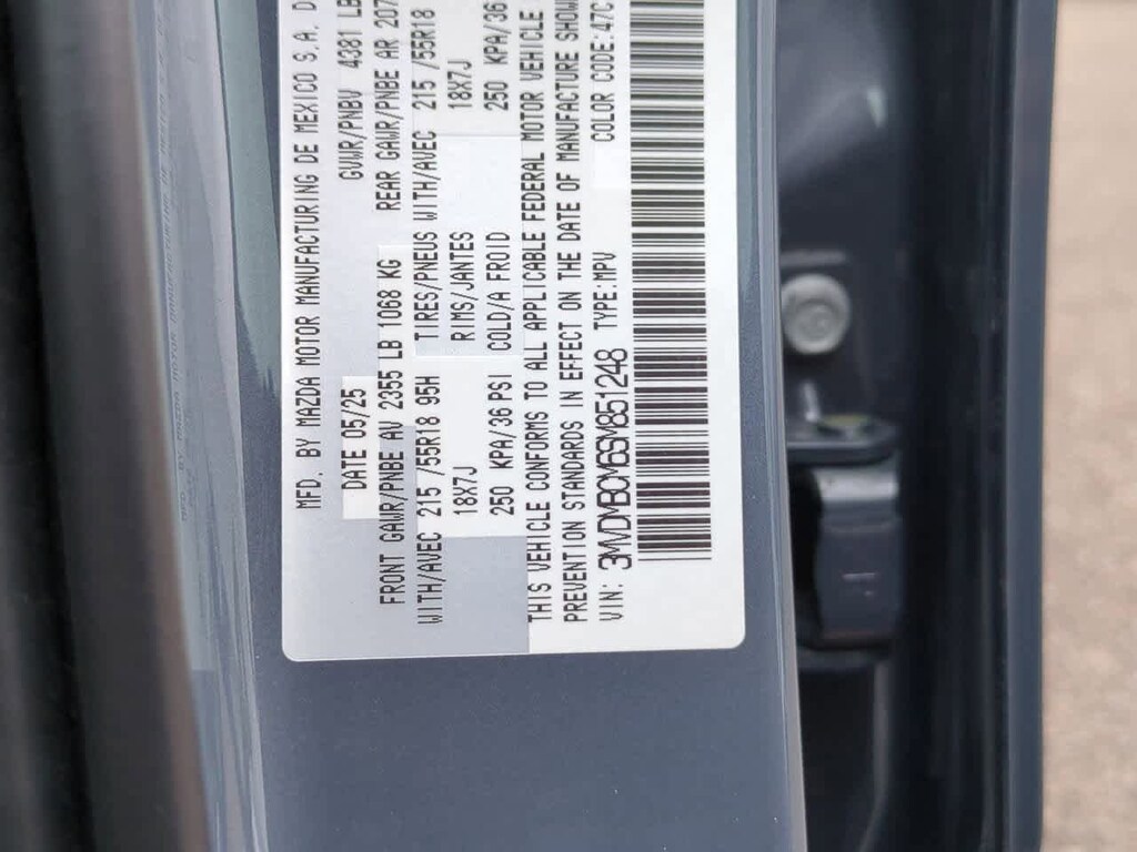 4-Wheel Disc Brakes, 8 Speakers, ABS brakes, Air Conditioning, Alloy wheels, AM/FM radio, AppLink/Apple CarPlay and Android Auto, Auto High-beam Headlights, Automatic temperature control, Brake assist, Bumpers: body-color, Compass, Delay-off headlights, Driver door bin, Driver vanity mirror, Dual front impact airbags, Dual front side impact airbags, Electronic Stability Control, Emergency communication system: Mazda Connected Services (3-year trial subscription included), Exterior Parking Camera Rear, Front anti-roll bar, Front Bucket Seats, Front Center Armrest, Front dual zone A/C, Front reading lights, Front wheel independent suspension, Fully automatic headlights, Heated door mirrors, Heated Front Bucket Seats, Heated front seats, Illuminated entry, Knee airbag, Leather Seat Trim, Leather Shift Knob, Leather steering wheel, Low tire pressure warning, MAZDA CONNECT Infotainment System, Memory seat, Occupant sensing airbag, Outside temperature display, Overhead airbag, Overhead console, Panic alarm, Passenger door bin, Passenger vanity mirror, Power door mirrors, Power driver seat, Power moonroof, Power steering, Power windows, Radio data system, Radio: AM/FM/HD Audio System, Rain sensing wipers, Rear seat center armrest, Rear side impact airbag, Rear window defroster, Rear window wiper, Remote keyless entry, Speed control, Speed-sensing steering, Split folding rear seat, Spoiler, Steering wheel mounted audio controls, Tachometer, Telescoping steering wheel, Tilt steering wheel, Traction control, Trip computer, Turn signal indicator mirrors, Variably intermittent wipers, and Wheels: 18 x 7J Aluminum Alloy. Price includes: $1000 - Customer Cash. Exp. 02/02/2026