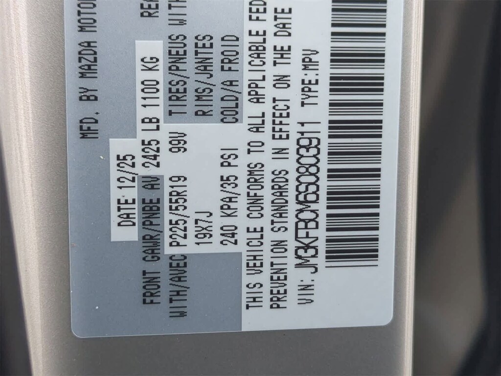 Roof Rails & Cross Bars Package, 4-Wheel Disc Brakes, 6 Speakers, ABS brakes, Air Conditioning, Alloy wheels, AM/FM radio, AppLink/Apple CarPlay and Android Auto, Auto High-beam Headlights, Auto-dimming Rear-View mirror, Automatic temperature control, Brake assist, Bumpers: body-color, Cargo Net, Delay-off headlights, Driver door bin, Driver vanity mirror, Dual front impact airbags, Dual front side impact airbags, E911 Automatic Emergency Notification, Electronic Stability Control, Emergency communication system: MAZDA CONNECT, Exterior Parking Camera Rear, Four wheel independent suspension, Front anti-roll bar, Front Bucket Seats, Front Center Armrest w/Storage, Front dual zone A/C, Front reading lights, Fully automatic headlights, Garage door transmitter: HomeLink, Heated Front Bucket Seats, Heated front seats, Illuminated entry, Infotainment System Voice Command, Leather Seat Trim, Leather Shift Knob, Leather steering wheel, Low tire pressure warning, Memory seat, Multifunction Commander Control, Occupant sensing airbag, Outside temperature display, Overhead airbag, Overhead console, Pandora, Panic alarm, Passenger door bin, Passenger vanity mirror, Power door mirrors, Power driver seat, Power Liftgate, Power moonroof, Power passenger seat, Power steering, Power windows, Radio Broadcast Data System Program Information, Radio data system, Radio: AM/FM/HD Audio System, Rain sensing wipers, Rear anti-roll bar, Rear reading lights, Rear seat center armrest, Rear window defroster, Rear window wiper, Remote keyless entry, Retractable Cargo Cover, SMS Text Msg Audio Delivery & Reply, Speed control, Speed-sensing steering, Split folding rear seat, Spoiler, Steering wheel mounted audio controls, Tachometer, Telescoping steering wheel, Tilt steering wheel, Traction control, Trip computer, Turn signal indicator mirrors, Variably intermittent wipers, and Wheels: 17 x 7J Aluminum Alloy. Price includes: $2500 - Customer Cash. Exp. 03/02/2026