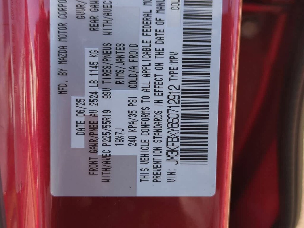 10 Speakers, 4-Wheel Disc Brakes, ABS brakes, Air Conditioning, All-Weather Floor Mats, Alloy wheels, AM/FM radio: SiriusXM, AppLink/Apple CarPlay and Android Auto, Auto High-beam Headlights, Auto-dimming Rear-View mirror, Automatic temperature control, Brake assist, Bumpers: body-color, Cargo Net, Cargo Tray, Delay-off headlights, Driver door bin, Driver vanity mirror, Dual front impact airbags, Dual front side impact airbags, E911 Automatic Emergency Notification, Electronic Stability Control, Emergency communication system: MAZDA CONNECT, First Aid Kit, Four wheel independent suspension, Front anti-roll bar, Front Bucket Seats, Front Center Armrest w/Storage, Front dual zone A/C, Front reading lights, Fully automatic headlights, Garage door transmitter: HomeLink, Genuine wood dashboard insert, Genuine wood door panel insert, Heads-Up Display, Heated door mirrors, Heated front seats, Heated rear seats, Heated steering wheel, Heated/Ventilated Front Bucket Seats, Illuminated entry, Infotainment System Voice Command, Leather Shift Knob, Leather steering wheel, Low tire pressure warning, Mazda Navigation System, Memory seat, Multifunction Commander Control, Nappa Leather Seat Trim, Navigation system: MAZDA CONNECT, Occupant sensing airbag, Outside temperature display, Overhead airbag, Overhead console, Pandora, Panic alarm, Passenger door bin, Passenger vanity mirror, Power door mirrors, Power driver seat, Power Liftgate, Power moonroof, Power passenger seat, Power steering, Power windows, Radio Broadcast Data System Program Information, Radio data system, Radio: AM/FM/HD Audio System, Rain sensing wipers, Rear anti-roll bar, Rear Bumper Guard, Rear reading lights, Rear seat center armrest, Rear window defroster, Rear window wiper, Remote keyless entry, SMS Text Msg Audio Delivery & Reply, Soul Red Crystal Metallic Paint, Speed control, Speed-sensing steering, Split folding rear seat, Spoiler, Steering wheel mounted audio controls, Tachometer, Telescoping steering wheel, Tilt steering wheel, Traction control, Trip computer, Turn signal indicator mirrors, Variably intermittent wipers, Ventilated front seats, Wheel Locks, and Wheels: 19 x 7J Aluminum Alloy. Price includes: $2500 - Customer Cash. Exp. 02/02/2026