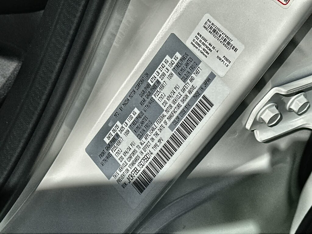 Roof Rails & Cross Bars Package, 4-Wheel Disc Brakes, 6 Speakers, ABS brakes, Air Conditioning, Alloy wheels, AM/FM radio, AppLink/Apple CarPlay and Android Auto, Auto High-beam Headlights, Automatic temperature control, Brake assist, Bumpers: body-color, Cargo Blocks, Delay-off headlights, Driver door bin, Driver vanity mirror, Dual front impact airbags, Dual front side impact airbags, E911 Automatic Emergency Notification, Electronic Stability Control, Emergency communication system: MAZDA CONNECT, Exterior Parking Camera Rear, First Aid Kit, Four wheel independent suspension, Front & Rear Splash Guards, Front anti-roll bar, Front Bucket Seats, Front Center Armrest w/Storage, Front dual zone A/C, Front reading lights, Fully automatic headlights, Heated Front Bucket Seats, Heated front seats, Illuminated entry, Infotainment System Voice Command, Leather Shift Knob, Leather steering wheel, Leatherette Seat Trim, Low tire pressure warning, Multifunction Commander Control, Occupant sensing airbag, Outside temperature display, Overhead airbag, Overhead console, Pandora, Panic alarm, Passenger door bin, Passenger vanity mirror, Power door mirrors, Power driver seat, Power steering, Power windows, Radio Broadcast Data System Program Information, Radio data system, Radio: AM/FM/HD Audio System, Rain sensing wipers, Rear anti-roll bar, Rear reading lights, Rear seat center armrest, Rear window defroster, Rear window wiper, Remote keyless entry, Rhodium White Metallic Paint, SMS Text Msg Audio Delivery & Reply, Speed control, Speed-sensing steering, Split folding rear seat, Spoiler, Steering wheel mounted audio controls, Tachometer, Telescoping steering wheel, Tilt steering wheel, Traction control, Trip computer, Turn signal indicator mirrors, Variably intermittent wipers, Wheel Locks, and Wheels: 17 x 7J Aluminum Alloy. 23/29 City/Highway MPG Price includes: $2000 - Customer Cash. Exp. 02/02/2026