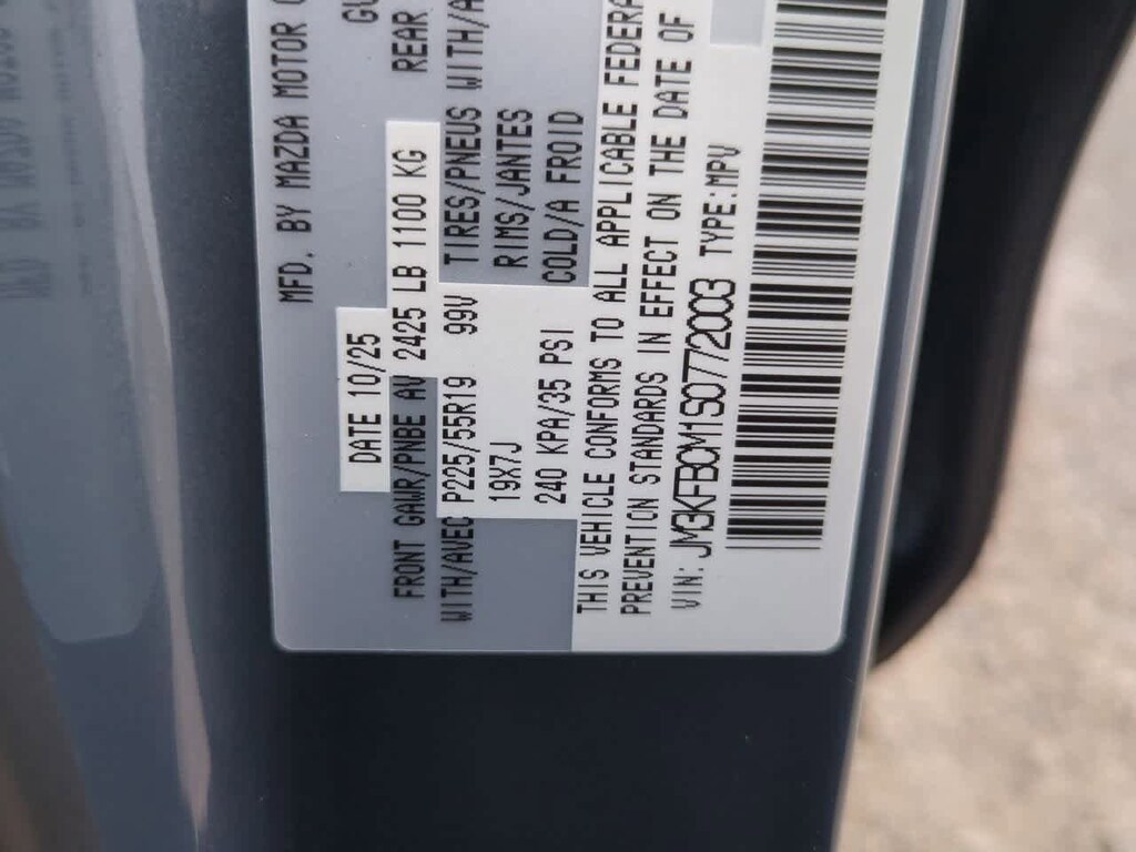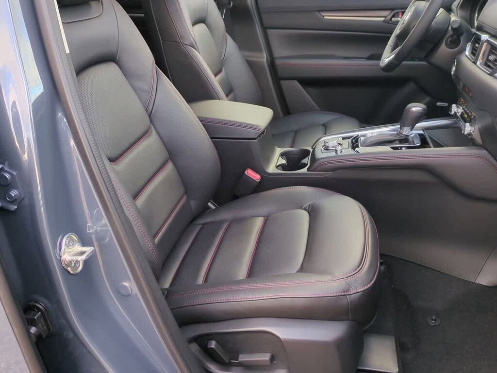 10 Speakers, 4-Wheel Disc Brakes, ABS brakes, Air Conditioning, Alloy wheels, AM/FM radio, AppLink/Apple CarPlay and Android Auto, Auto High-beam Headlights, Auto-dimming Rear-View mirror, Automatic temperature control, Black Lug Nuts & Black Wheel Locks, Brake assist, Bumpers: body-color, Delay-off headlights, Driver door bin, Driver vanity mirror, Dual front impact airbags, Dual front side impact airbags, E911 Automatic Emergency Notification, Electronic Stability Control, Emergency communication system: MAZDA CONNECT, Exterior Parking Camera Rear, Four wheel independent suspension, Front anti-roll bar, Front Bucket Seats, Front Center Armrest w/Storage, Front dual zone A/C, Front reading lights, Fully automatic headlights, Garage door transmitter: HomeLink, Heated Front Bucket Seats, Heated front seats, Illuminated entry, Infotainment System Voice Command, Leather Seat Trim, Leather Shift Knob, Leather steering wheel, Low tire pressure warning, Memory seat, Multifunction Commander Control, Occupant sensing airbag, Outside temperature display, Overhead airbag, Overhead console, Pandora, Panic alarm, Passenger door bin, Passenger vanity mirror, Polymetal Gray Metallic Paint, Power door mirrors, Power driver seat, Power Liftgate, Power moonroof, Power passenger seat, Power steering, Power windows, Radio Broadcast Data System Program Information, Radio data system, Radio: AM/FM/HD Audio System, Rain sensing wipers, Rear anti-roll bar, Rear reading lights, Rear seat center armrest, Rear window defroster, Rear window wiper, Remote keyless entry, SMS Text Msg Audio Delivery & Reply, Speed control, Speed-sensing steering, Split folding rear seat, Spoiler, Steering wheel mounted audio controls, Tachometer, Telescoping steering wheel, Tilt steering wheel, Traction control, Trip computer, Turn signal indicator mirrors, Variably intermittent wipers, and Wheels: 19 x 7J Aluminum Alloy.