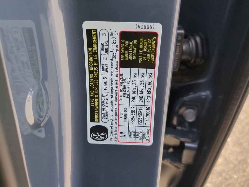- Front tires: 225/55VR19.0