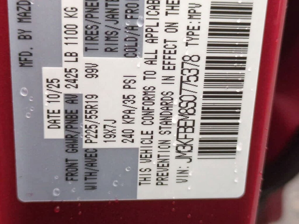 10 Speakers, 4-Wheel Disc Brakes, ABS brakes, Air Conditioning, All-Weather Floor Mats, Alloy wheels, AM/FM radio: SiriusXM, AppLink/Apple CarPlay and Android Auto, Auto High-beam Headlights, Auto-dimming Rear-View mirror, Automatic temperature control, Brake assist, Bumpers: body-color, Cargo Tray, Delay-off headlights, Driver door bin, Driver vanity mirror, Dual front impact airbags, Dual front side impact airbags, E911 Automatic Emergency Notification, Electronic Stability Control, Emergency communication system: MAZDA CONNECT, Four wheel independent suspension, Front anti-roll bar, Front Bucket Seats, Front Center Armrest w/Storage, Front dual zone A/C, Front reading lights, Fully automatic headlights, Garage door transmitter: HomeLink, Heads-Up Display, Heated door mirrors, Heated front seats, Heated rear seats, Heated steering wheel, Heated/Ventilated Front Bucket Seats, Illuminated entry, Infotainment System Voice Command, Leather Seat Trim, Leather Shift Knob, Leather steering wheel, Low tire pressure warning, Memory seat, Multifunction Commander Control, Occupant sensing airbag, Outside temperature display, Overhead airbag, Overhead console, Pandora, Panic alarm, Passenger door bin, Passenger vanity mirror, Power door mirrors, Power driver seat, Power Liftgate, Power moonroof, Power passenger seat, Power steering, Power windows, Radio Broadcast Data System Program Information, Radio data system, Radio: AM/FM/HD Audio System, Rain sensing wipers, Rear anti-roll bar, Rear Bumper Guard, Rear reading lights, Rear seat center armrest, Rear window defroster, Rear window wiper, Remote keyless entry, SMS Text Msg Audio Delivery & Reply, Soul Red Crystal Metallic Paint, Speed control, Speed-sensing steering, Split folding rear seat, Spoiler, Steering wheel mounted audio controls, Tachometer, Telescoping steering wheel, Tilt steering wheel, Traction control, Trip computer, Turn signal indicator mirrors, Variably intermittent wipers, Ventilated front seats, Wheel Locks, and Wheels: 19 x 7J Aluminum Alloy.