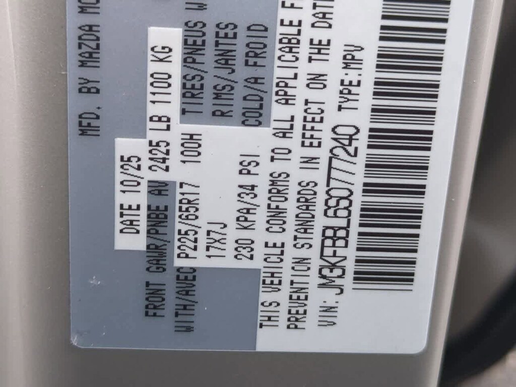4-Wheel Disc Brakes, 6 Speakers, ABS brakes, Air Conditioning, All-Weather Floor Mats, Alloy wheels, AM/FM radio, AppLink/Apple CarPlay and Android Auto, Auto High-beam Headlights, Automatic temperature control, Brake assist, Bumpers: body-color, Cargo Tray, Delay-off headlights, Driver door bin, Driver vanity mirror, Dual front impact airbags, Dual front side impact airbags, E911 Automatic Emergency Notification, Electronic Stability Control, Emergency communication system: MAZDA CONNECT, Exterior Parking Camera Rear, Four wheel independent suspension, Front anti-roll bar, Front Bucket Seats, Front Center Armrest w/Storage, Front dual zone A/C, Front reading lights, Fully automatic headlights, Heated Front Bucket Seats, Heated front seats, Illuminated entry, Infotainment System Voice Command, Leather Shift Knob, Leather steering wheel, Leatherette Seat Trim, Low tire pressure warning, Multifunction Commander Control, Occupant sensing airbag, Outside temperature display, Overhead airbag, Overhead console, Pandora, Panic alarm, Passenger door bin, Passenger vanity mirror, Power door mirrors, Power driver seat, Power steering, Power windows, Radio Broadcast Data System Program Information, Radio data system, Radio: AM/FM/HD Audio System, Rain sensing wipers, Rear anti-roll bar, Rear Bumper Guard, Rear reading lights, Rear seat center armrest, Rear window defroster, Rear window wiper, Remote keyless entry, SMS Text Msg Audio Delivery & Reply, Speed control, Speed-sensing steering, Split folding rear seat, Spoiler, Steering wheel mounted audio controls, Tachometer, Telescoping steering wheel, Tilt steering wheel, Traction control, Trip computer, Turn signal indicator mirrors, Variably intermittent wipers, Wheel Locks, and Wheels: 17 x 7J Aluminum Alloy. Price includes: $2500 - Customer Cash. Exp. 02/02/2026