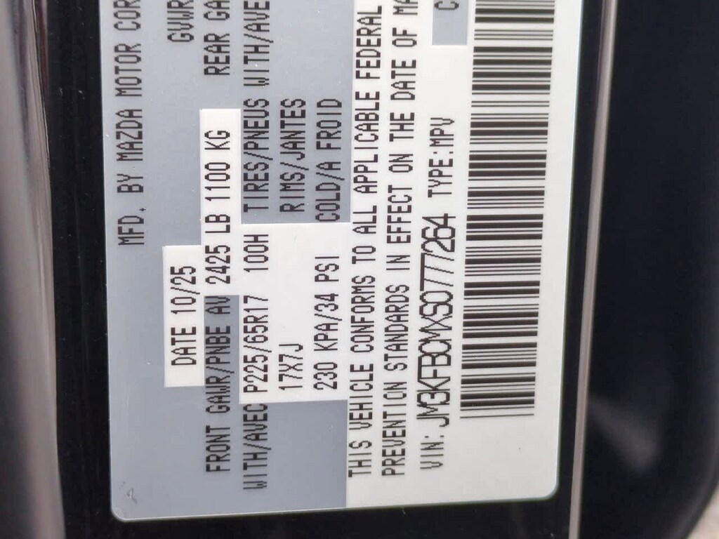 4-Wheel Disc Brakes, 6 Speakers, ABS brakes, Air Conditioning, All-Weather Floor Mats, Alloy wheels, AM/FM radio, AppLink/Apple CarPlay and Android Auto, Auto High-beam Headlights, Auto-dimming Rear-View mirror, Automatic temperature control, Brake assist, Bumpers: body-color, Cargo Tray, Delay-off headlights, Driver door bin, Driver vanity mirror, Dual front impact airbags, Dual front side impact airbags, E911 Automatic Emergency Notification, Electronic Stability Control, Emergency communication system: MAZDA CONNECT, Exterior Parking Camera Rear, Four wheel independent suspension, Front anti-roll bar, Front Bucket Seats, Front Center Armrest w/Storage, Front dual zone A/C, Front reading lights, Fully automatic headlights, Garage door transmitter: HomeLink, Heated Front Bucket Seats, Heated front seats, Illuminated entry, Infotainment System Voice Command, Leather Seat Trim, Leather Shift Knob, Leather steering wheel, Low tire pressure warning, Memory seat, Multifunction Commander Control, Occupant sensing airbag, Outside temperature display, Overhead airbag, Overhead console, Pandora, Panic alarm, Passenger door bin, Passenger vanity mirror, Power door mirrors, Power driver seat, Power Liftgate, Power moonroof, Power passenger seat, Power steering, Power windows, Radio Broadcast Data System Program Information, Radio data system, Radio: AM/FM/HD Audio System, Rain sensing wipers, Rear anti-roll bar, Rear Bumper Guard, Rear reading lights, Rear seat center armrest, Rear window defroster, Rear window wiper, Remote keyless entry, SMS Text Msg Audio Delivery & Reply, Speed control, Speed-sensing steering, Split folding rear seat, Spoiler, Steering wheel mounted audio controls, Tachometer, Telescoping steering wheel, Tilt steering wheel, Traction control, Trip computer, Turn signal indicator mirrors, Variably intermittent wipers, Wheel Locks, and Wheels: 17 x 7J Aluminum Alloy. Price includes: $2500 - Customer Cash. Exp. 02/02/2026