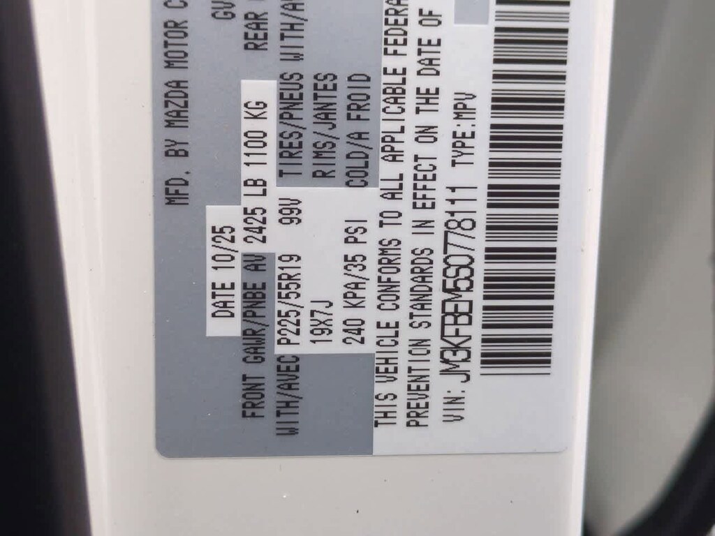 Roof Rails & Cross Bars Package, 10 Speakers, 4-Wheel Disc Brakes, ABS brakes, Air Conditioning, Alloy wheels, AM/FM radio: SiriusXM, AppLink/Apple CarPlay and Android Auto, Auto High-beam Headlights, Auto-dimming Rear-View mirror, Automatic temperature control, Brake assist, Bumpers: body-color, Cargo Net, Delay-off headlights, Driver door bin, Driver vanity mirror, Dual front impact airbags, Dual front side impact airbags, E911 Automatic Emergency Notification, Electronic Stability Control, Emergency communication system: MAZDA CONNECT, Four wheel independent suspension, Front anti-roll bar, Front Bucket Seats, Front Center Armrest w/Storage, Front dual zone A/C, Front reading lights, Fully automatic headlights, Garage door transmitter: HomeLink, Heads-Up Display, Heated door mirrors, Heated front seats, Heated rear seats, Heated steering wheel, Heated/Ventilated Front Bucket Seats, Illuminated entry, Infotainment System Voice Command, Leather Seat Trim, Leather Shift Knob, Leather steering wheel, Low tire pressure warning, Memory seat, Multifunction Commander Control, Occupant sensing airbag, Outside temperature display, Overhead airbag, Overhead console, Pandora, Panic alarm, Passenger door bin, Passenger vanity mirror, Power door mirrors, Power driver seat, Power Liftgate, Power moonroof, Power passenger seat, Power steering, Power windows, Radio Broadcast Data System Program Information, Radio data system, Radio: AM/FM/HD Audio System, Rain sensing wipers, Rear anti-roll bar, Rear reading lights, Rear seat center armrest, Rear window defroster, Rear window wiper, Remote keyless entry, Retractable Cargo Cover, Rhodium White Metallic Paint, SMS Text Msg Audio Delivery & Reply, Speed control, Speed-sensing steering, Split folding rear seat, Spoiler, Steering wheel mounted audio controls, Tachometer, Telescoping steering wheel, Tilt steering wheel, Traction control, Trip computer, Turn signal indicator mirrors, Variably intermittent wipers, Ventilated front seats, Wheel Locks, and Wheels: 19 x 7J Aluminum Alloy. Price includes: $2500 - Customer Cash. Exp. 02/02/2026
